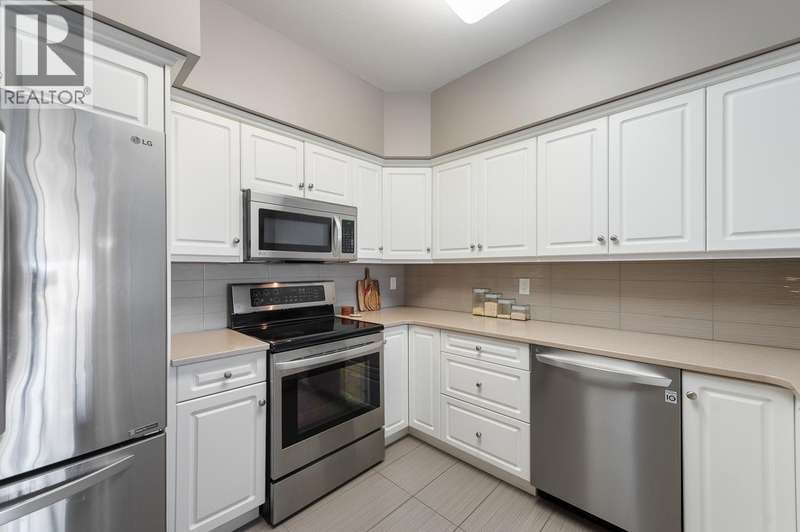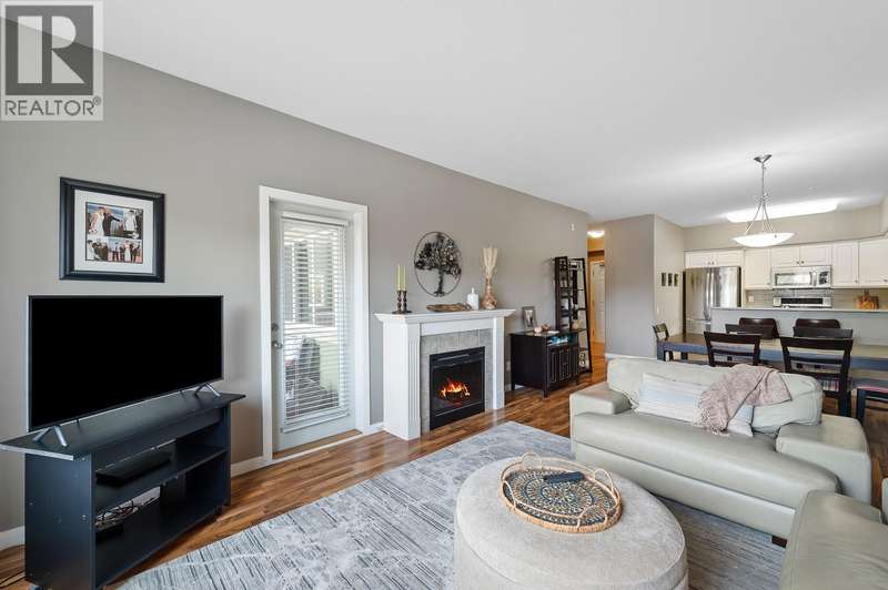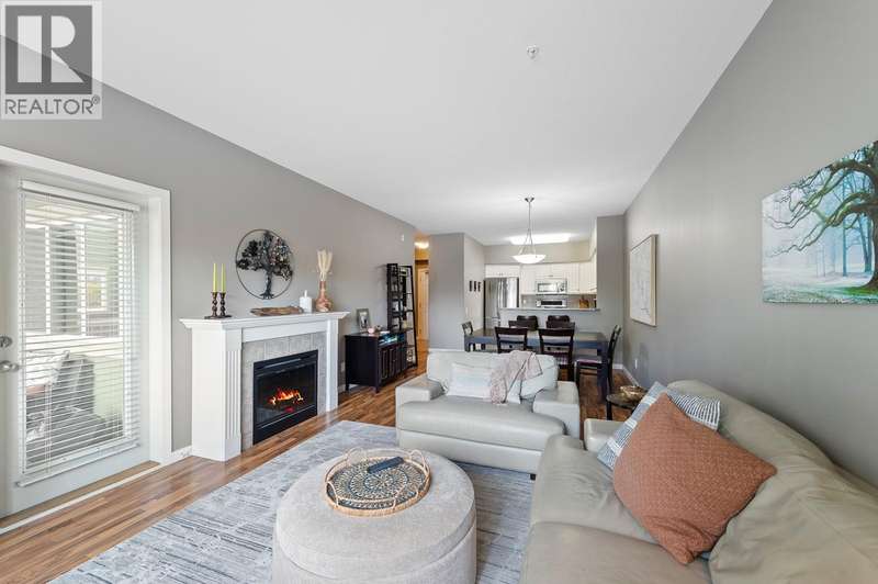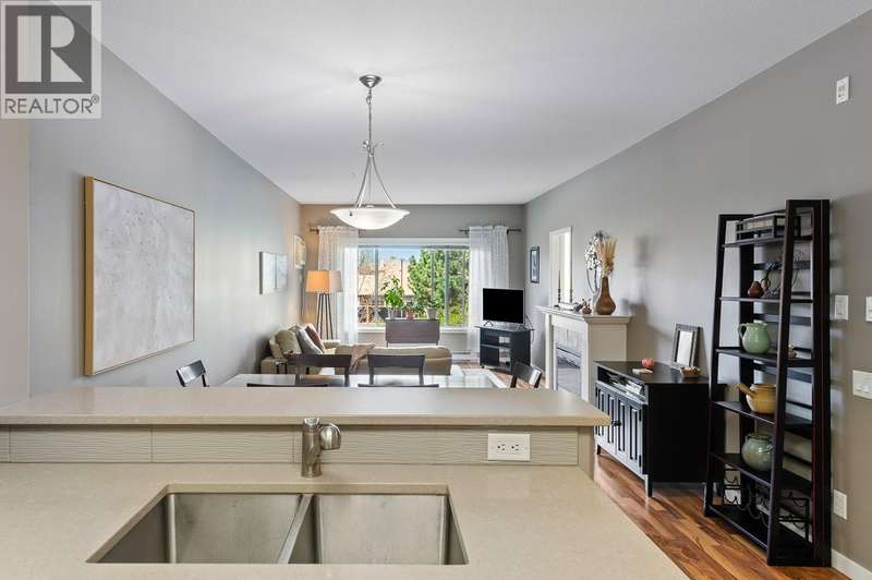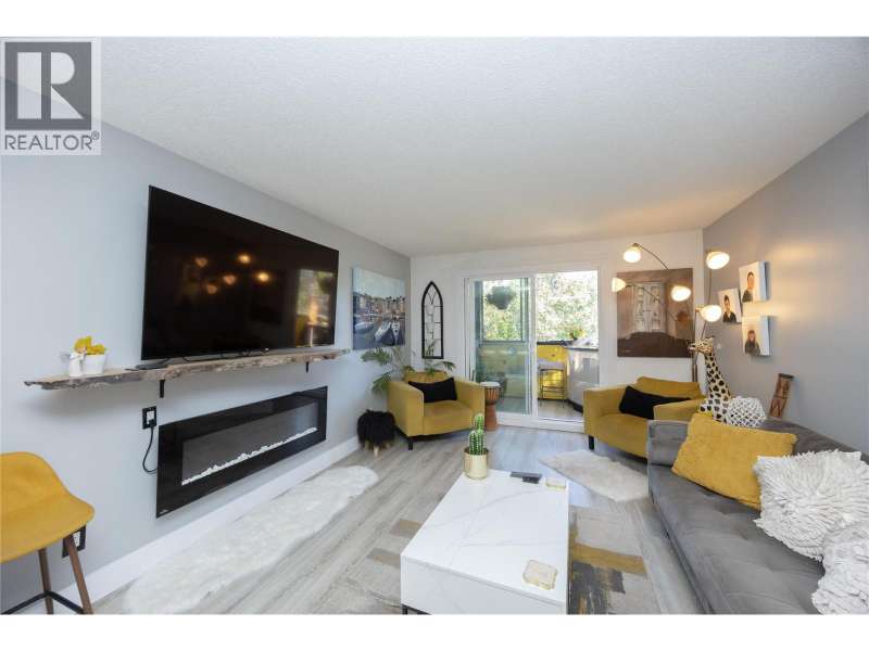 ""QUIET SIDE ""- Welcome to Wildwood Village, ideally located in the heart of Kelowna’s highly desirable Lower Mission. This beautifully updated 2-bedroom, 2-bathroom home offers 1,088 sq. ft. of functional and comfortable living space. With 9-foot ceilings, easy-care laminate flooring, and a cozy fireplace, the open-concept layout is both stylish and inviting. The updated kitchen is designed with high-end stainless steel LG appliances, quartz countertops and a raised eating bar—perfect for casual dining or entertaining. Step outside to the spacious, covered deck, ideal for soaking in the Okanagan sun or enjoying a summer BBQ. The primary ensuite includes a walk-in shower, while the large in-suite laundry room provides additional storage or pantry space. Very healthy contingency and well run strata. This home also comes with a secure underground parking stall and lots of extra outdoor spots for an additional car or guests plus a storage locker. The building offers excellent amenities, including a guest suite. Perfectly situated across from the H2O Centre, MNP Place, sports fields, hockey rinks, transit and the Mission Creek Greenway with Okanagan Lake, parks, beaches, golf courses, coffee shops, and restaurants all just minutes away. Move-in ready and waiting for you. The plumbing throughout building has been replaced and fully paid for. Pet-friendly 1 dog (under 14"" at the shoulder) or 1 cat (id:7434)