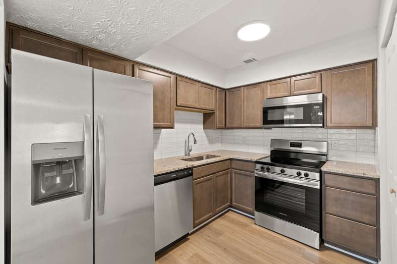 Move-in ready and recently renovated in Century Hills! This home offers fresh flooring throughout, including durable luxury vinyl plank and plush carpet. The main level features a spacious living room with backyard access, an updated kitchen with new cabinets, tile backsplash, stainless steel appliances, and a dining area. A convenient laundry space and refreshed half bath complete the first floor. Upstairs, two large bedrooms with vaulted ceilings share an updated full bath. Outside, you'll find a one-car carport and extra storage. Conveniently located near shopping, dining, and everyday amenities.
