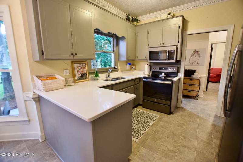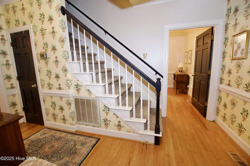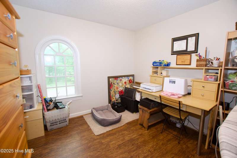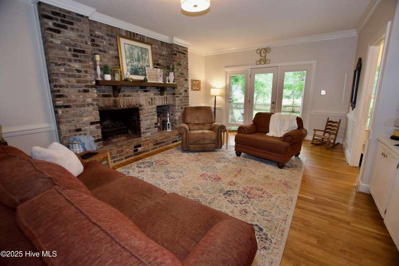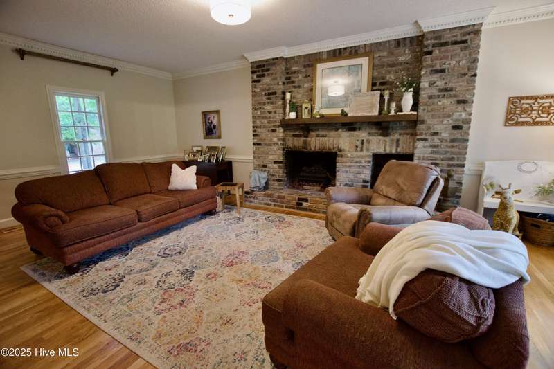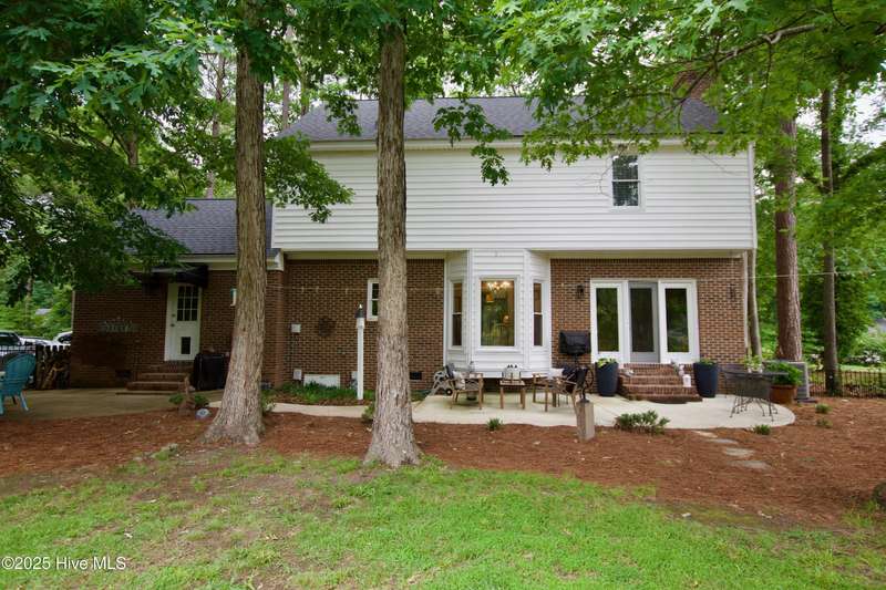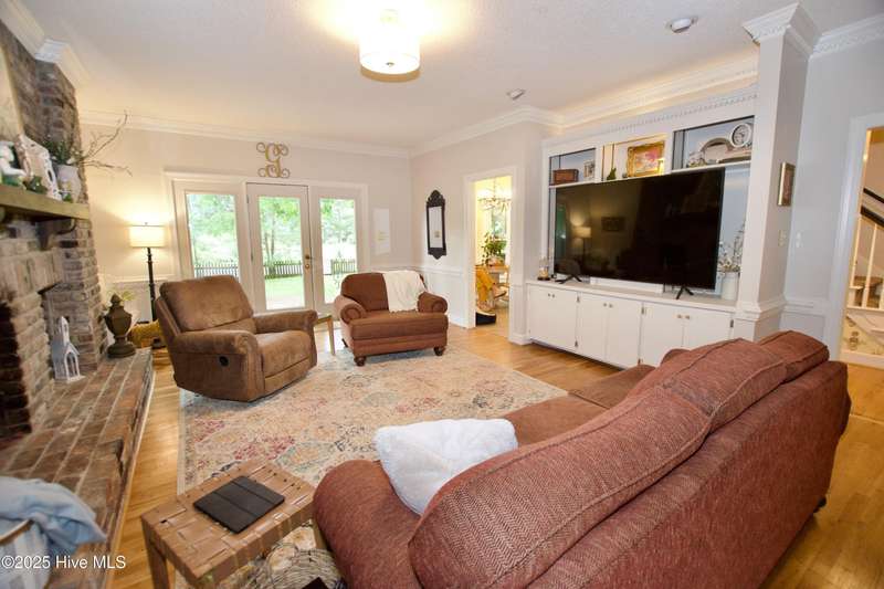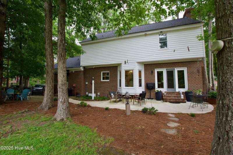 Welcome to this beautifully maintained four-bedroom, three-bath home, perfectly situated on a peaceful cul-de-sac. This classic brick residence offers timeless elegance with thoughtful details throughout, including 9-foot ceilings, heavy crown molding, chair rail accents, and solid countertops. The spacious great room features a stunning Silas Lucas brick fireplace flanked by custom built-in bookcases—perfect for cozy evenings or entertaining guests. Enjoy views of the expansive backyard from your sofa, or step outside to a large patio ideal for outdoor gatherings. The backyard also includes an invisible pet fence, offering peace of mind for pet owners while maintaining an open, unobstructed outdoor space. Inside, you'll find a formal dining room, inviting foyer, and an eat-in kitchen, as well as a versatile office that could also serve as a small in-law suite, complete with a full bathroom nearby. A large walk-in pantry adds valuable storage space. Upstairs, all four generously sized bedrooms and two full bathrooms offer comfort and convenience. Additional features include a pull-down ladder leading to a fully floored attic, providing ample storage. This home blends traditional charm with functional living space—don't miss your chance to make it yours!