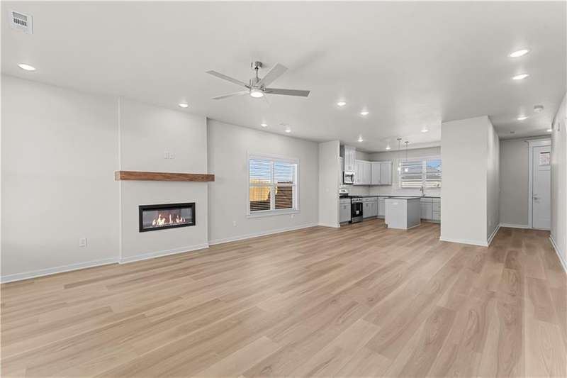 Fence, blinds and gutters included! Discover your dream home in the sought-after Osage Hills neighborhood. Frisco plan with garage on the left and North facing! 9 ft ceilings, linear electric fireplace, LVP flooring throughout the main living areas and primary bedroom, quartz countertops and more. Chef's kitchen boasting frigidaire stainless steel appliances, gas range, pantry, quartz countertops, bar pull handles, large island and gorgeous backsplash. Luxurious primary bedroom features abundant natural light, while the spa-like primary bathroom offers a walk-in shower, tub, double sinks, and spacious walk-in closets. Additional features include three large secondary bedrooms upstairs and a separate laundry room. Nestled on a generous lot with covered patio that overlooks the serene sodded, fully fenced backyard. Sturdy concrete siding & brick! Model home located at 6008 SW Coywolf St- Lot 122.