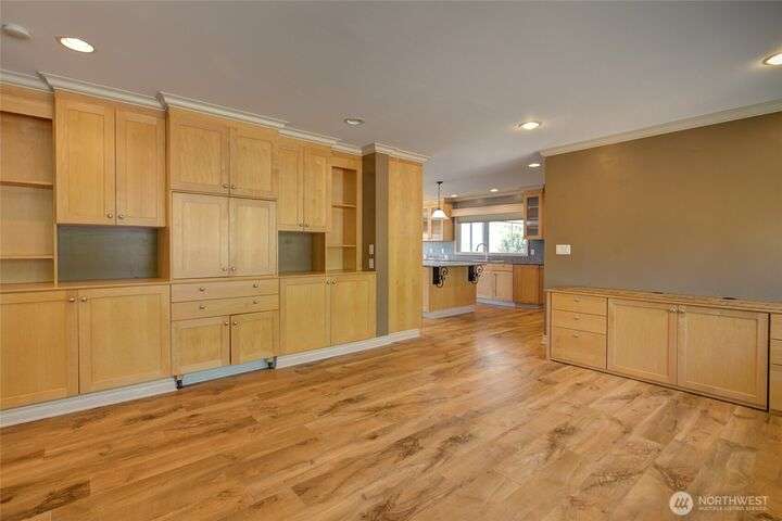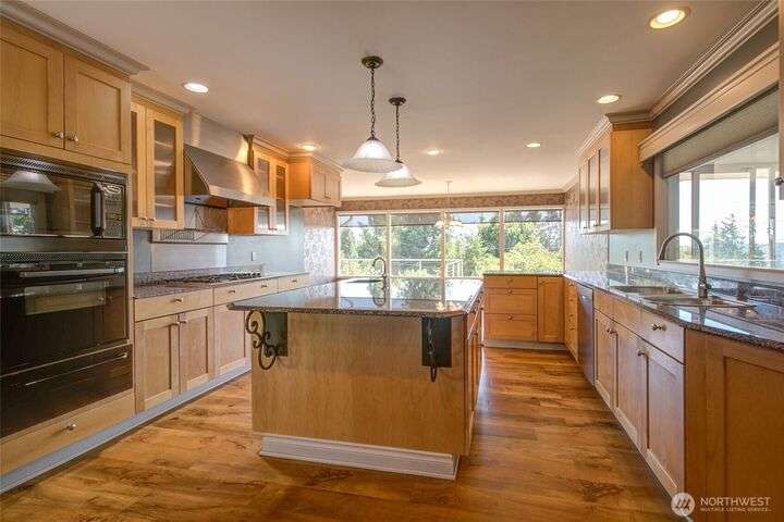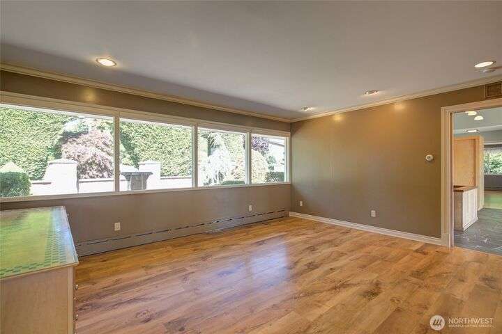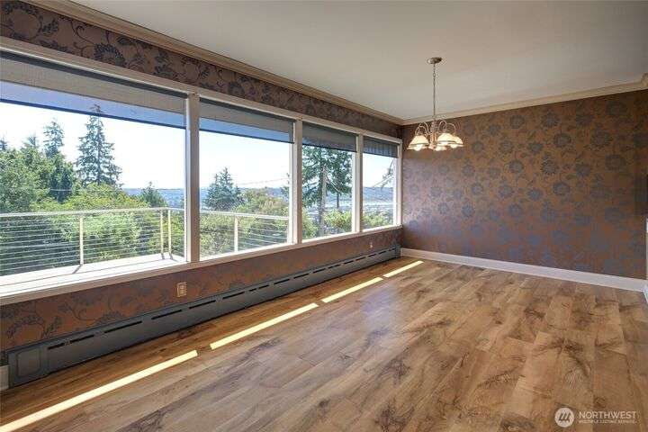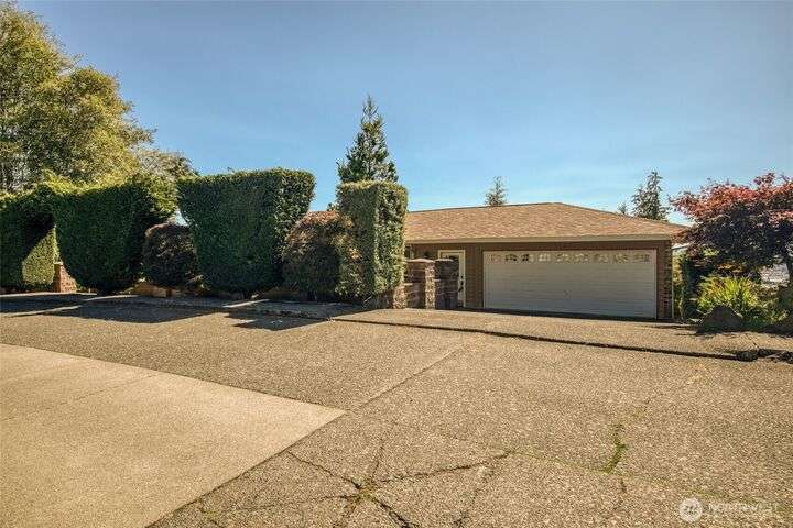 Spectacular Mid-Century Modern with Sweeping Views! Behind a brick-detailed privacy fence and landscaping, this home stuns with clear cedar inside & out, a serene courtyard with water feature, and a Trex deck overlooking breathtaking views. Spacious kitchen with granite counters & large island opens to family room. Vaulted living room ceiling, 2 main-floor primary suites, plus 2 bedrooms, rec room with gas fireplace & huge laundry downstairs. As well as a bonus, utility & other extra rooms. Features 3.5 baths total, custom blinds, high-efficiency radiant heat, wood look vinyl plank flooring in most rooms, walk-in safe, dog run, major storage areas, fruit trees, oversized 2-car garage. And Adjacent lot available to purchase!
