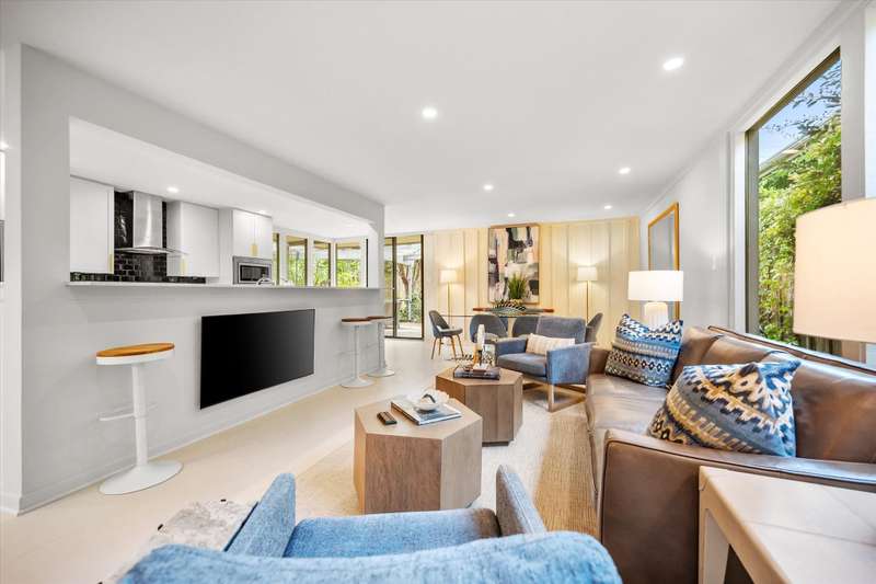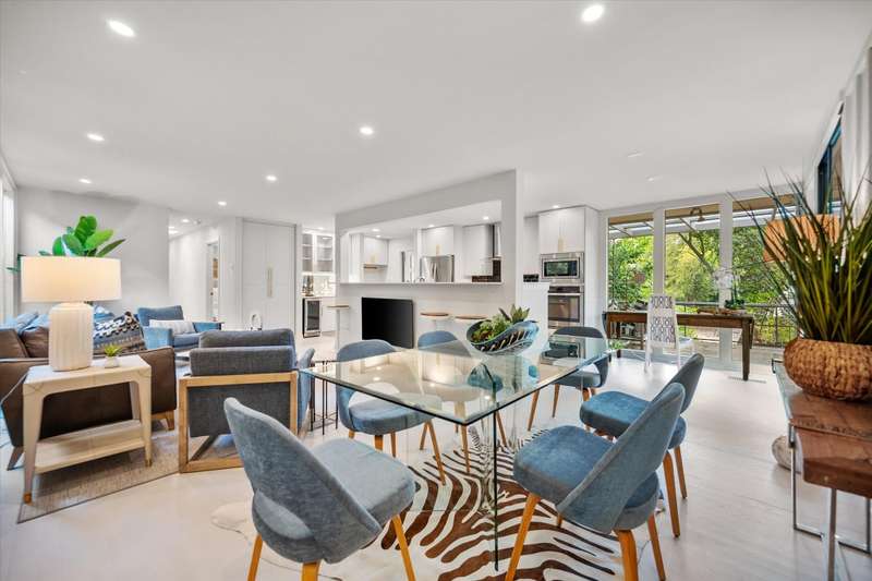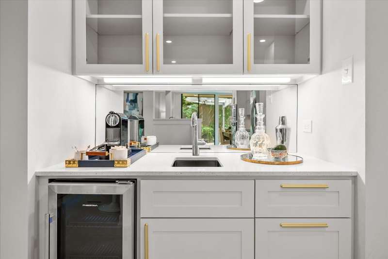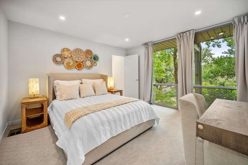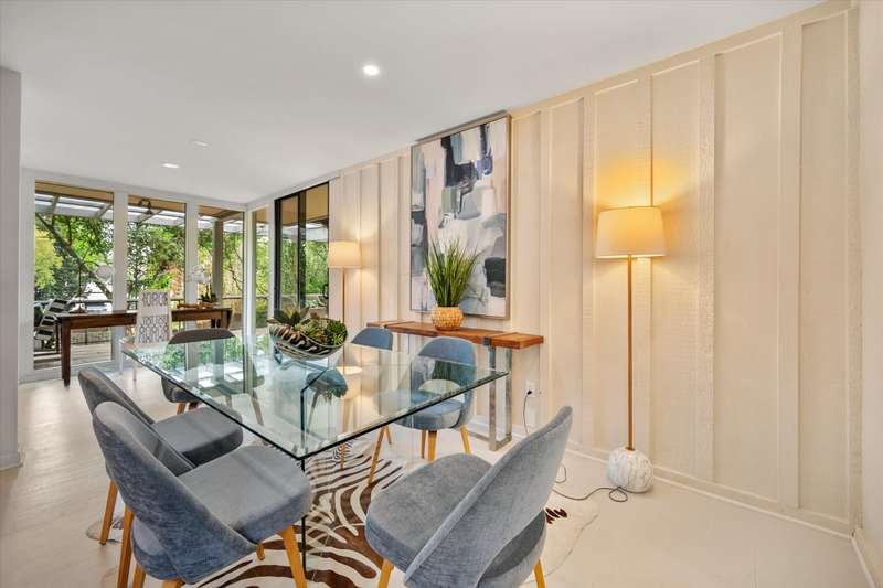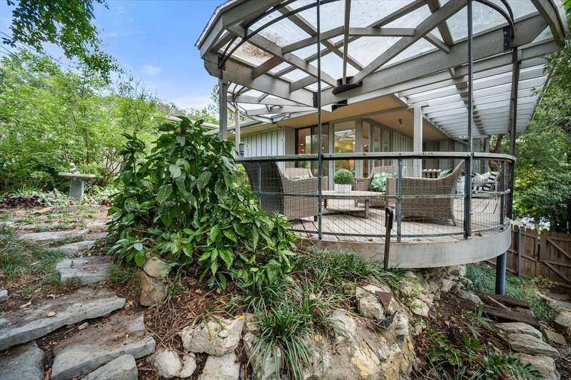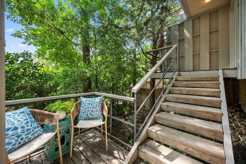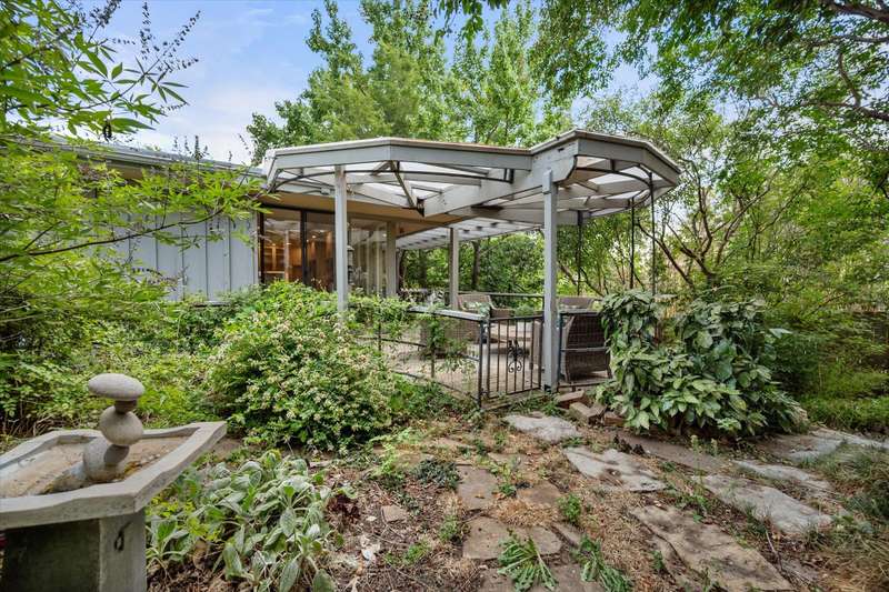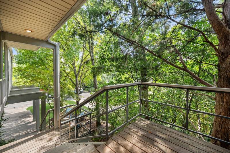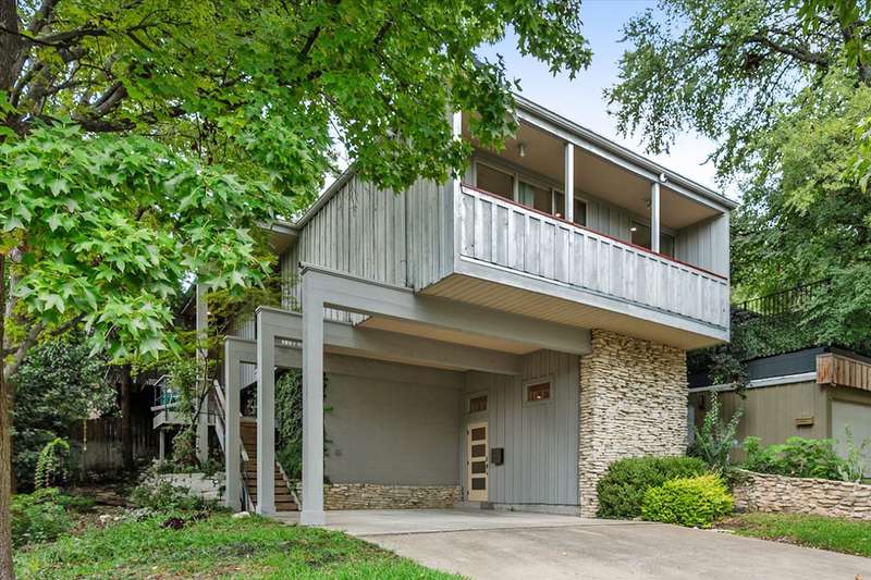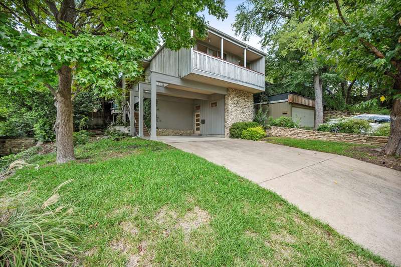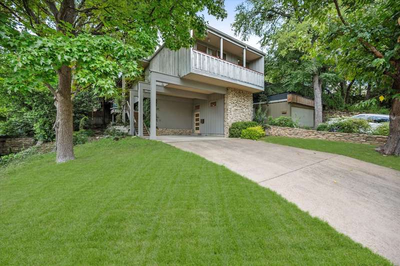Elevated above the street and framed by mature trees, this three-bedroom, two-and-a-half-bathroom home captures the best of mid-century modern design. Clean architectural lines and expansive floor-to-ceiling windows create a seamless connection between indoors and out, filling the open-concept living and dining spaces with light. The updated kitchen combines style and function with stainless steel appliances, granite countertops, and a gas cooktop, while a wet bar adds the perfect touch for entertaining. The primary suite offers a private balcony, walls of windows, and a beautifully renovated ensuite bath. Upstairs also includes a secondary bedroom with treetop views, while the third bedroom with full bath is located downstairs. This space can easily serve as a bedroom or be adapted into a studio, office, fitness room, or media loungeoffering true flexibility. Recent renovations include a new HVAC system, updated plumbing, and updated electrical, ensuring peace of mind for the next owner. Outdoors, a shaded and covered deck provides a comfortable setting for gatherings or quiet evenings at home. Set in a prime location within walking distance to TCU, this one-of-a-kind property also places you minutes from shopping, dining, the Fort Worth Zoo, and the Hospital District. A rare opportunity to own true mid-century modern architecture in the heart of Fort Worth.