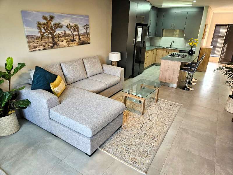 Welcome to your luxurious modern retreat in the heart of a secure complex. This exquisite first-floor apartment boasts three spacious bedrooms and two bathrooms, offering the perfect blend of comfort and style. As you step inside, you're greeted by a sense of sophistication and elegance. Continuing through the apartment, you'll find yourself in the expansive living area, characterized by an open-plan design that seamlessly integrates the kitchen and lounge spaces. The kitchen is a chef's dream. Whether you're preparing a gourmet meal for guests or enjoying a quiet breakfast at the island counter, this space is as functional as it is stylish. The living room serves as the heart of the home, offering a cozy retreat where you can unwind with a good book. Each of the three bedrooms exudes comfort and style with ample closet space. Whether you're retiring for the night or enjoying a lazy weekend morning, these serene sanctuaries offer the perfect balance of tranquility and refinement. One bedroom also has a study nook. Experience the pinnacle of modern luxury living in this stunning three-bedroom apartment, where every detail has been carefully curated to elevate your lifestyle to new heights. Welcome home.