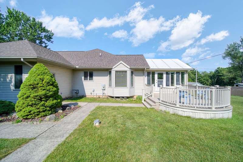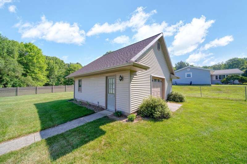 Charming Ranch-Style Home with Exceptional Features & Ideal LocationYou won't want to miss this quality-built ranch-style home, loaded with upgrades and set in a highly convenient location. Built with durable 2x6 exterior wall construction, this home offers lasting craftsmanship and thoughtful design throughout.Perfectly situated between Jackson, Chelsea, and Ann Arbor, this property is also within walking distance to East Jackson Junior High and High School?ideal for families or commuters alike.From the start, the home's curb appeal stands out. Inside, you'll find Andersen windows throughout, new wood flooring, a cozy fireplace in the living room, and a spacious dining area with a bright bay window. The kitchen and dining room open to a light-filled three season room 2 car garage is separated from another 1 car, heated garage/storage. A free standing 23x23 ft garage/barn which matches the home is also on the property. New privacy fence extends across the entire back of the property.Basement is 17x50 and 12x14 finished area with and another fireplace and storage as well, newer furnace, water heater ,newer roofand move in ready . So much to offer this very nice home