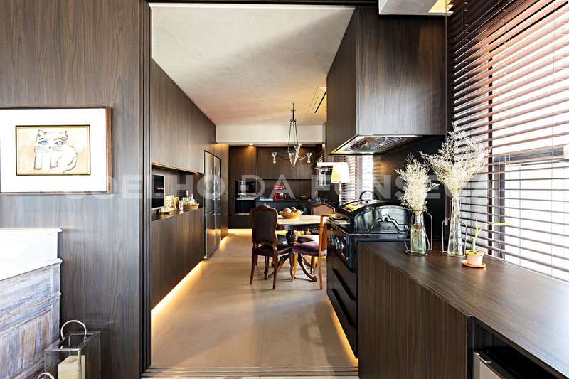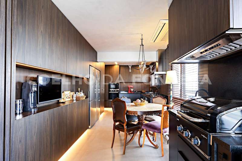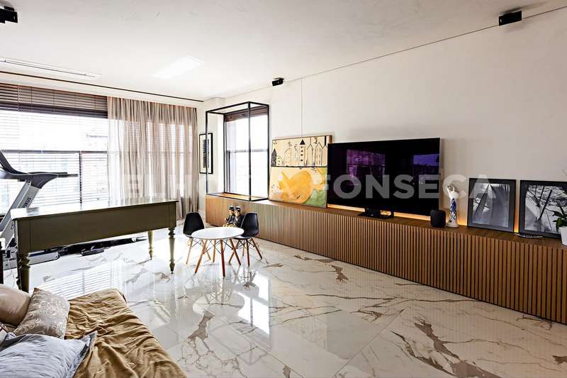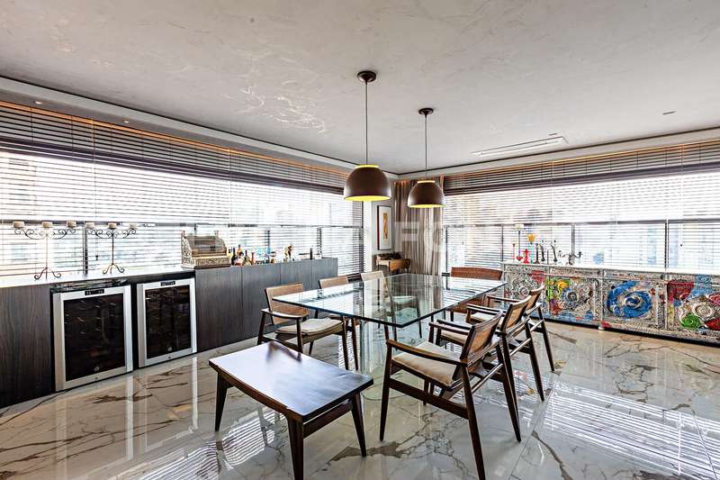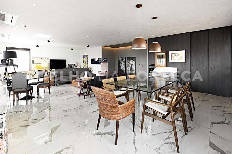 Cozinha completa pode ser integrada ou não à sala por uma porta totalmente retrátil e harmônica acompanha o acabamento da sala.Aparelhos de linha branca da Frankel , churasqueira com exaustor super potente , ar condicionado em todos os ambiente e um maravilhoso aquário que separa a sala da área intíma.Piso em porcelanato Portinari.