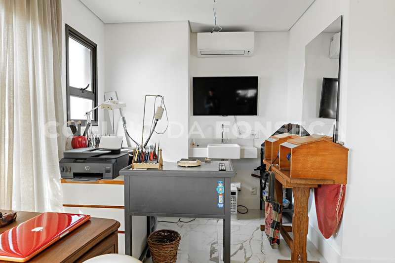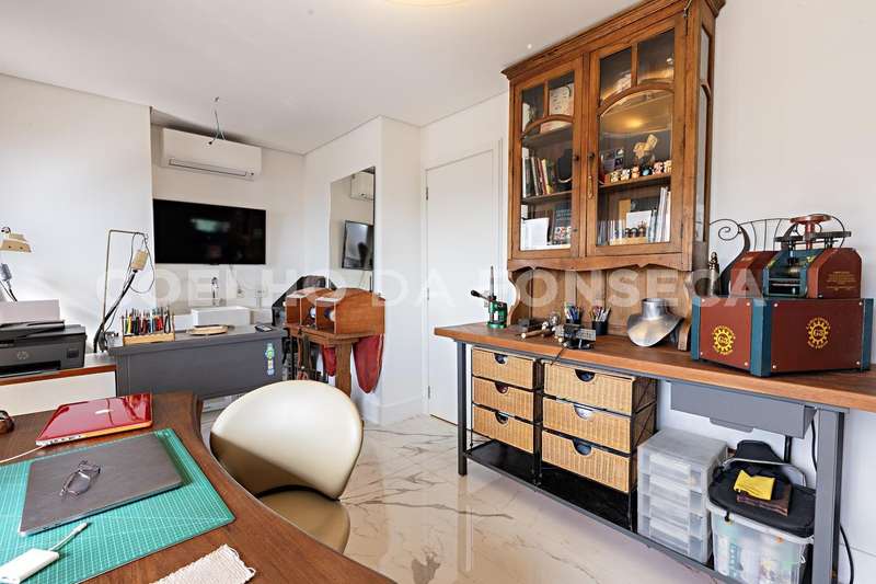 Apartamento de altíssimo padrão, andar alto, muito claro e ensolarado,totalmente reformado com marcenaria de fino acabamento, ambientes amplos com projeto de iluminaçãos e linda vista permanente.3 suites sendo a Suite master de tamanho duplo conta com ante camara , closet, banho ele e ela e marcenaria impecável.Um ateliê que pode ser um escritório ou ainda retornar a mais uma suite.