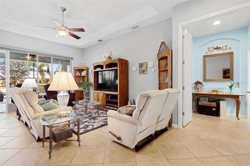(HUUUGGGEEE!! Price Reduction.) Why shop around? Let's make a deal. This home is vacant and the Seller is HIGHLY MOTIVATED !! Welcome to this BEAUTIFUL pool home with almost 1700 Square feet of living space which does not include the patio and wrap around pool deck space that is also available for enjoyment. This amazing home has so many custom upgrades making this a must see especially if you want to spoil yourself in comfort. Some of the wonderful features include raised bathroom vanities, custom cabinetry in the kitchen with bottom cabinet slide out and corner cabinet side slides. Very large wrap around cabinets throughout the kitchen for ample storage space to keep the counters free of clutter. There is an instant tankless hot water heater below the kitchen sink, a very large bar area for enough space to seat six, not to include the great dinette area just to sit and relax in the morning or evening. The main living areas are so bright and open with a great view of the pool and patio area just beyond the sliding doors that bring the outside in and vice versa. You can also watch the sunrise with great views from the back of the property. Custom remote blinds in the main family room and dinette for ease of raising and lowering. The primary bedroom has a sliding door to the pool area and a small pass through which brings you to the ensuite bathroom with double vanity sink area, separate commode and walk-in closet. Split bedroom plan so your guests will feel like they are staying in a place all their own when visiting.There is a whole house Generac Generator so the storms should not be a problem when it comes to keeping power at the property. New paint on the exterior to include the whole home and pool patio area, gas hookup for grill or ready for you to build a custom outdoor kitchen. THIS HOME SHOULD BE ON THE MUST SEE LIST!!!!