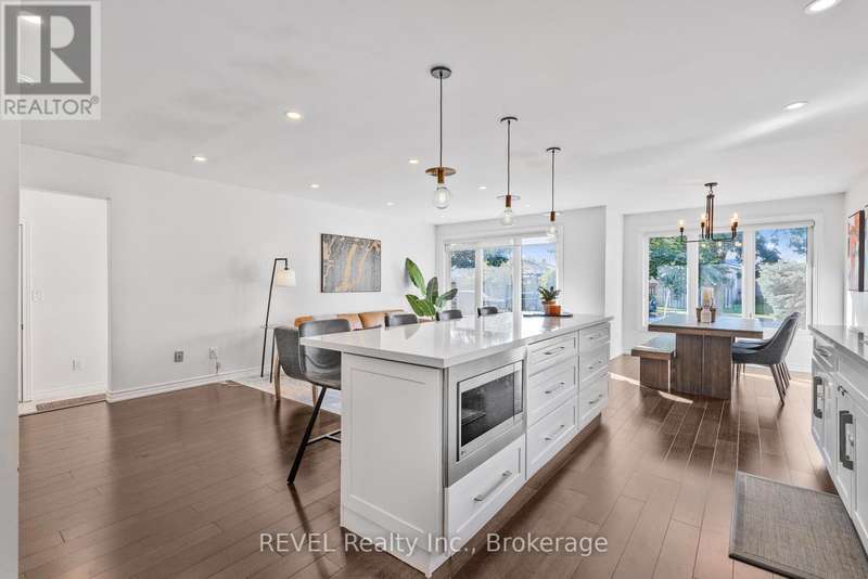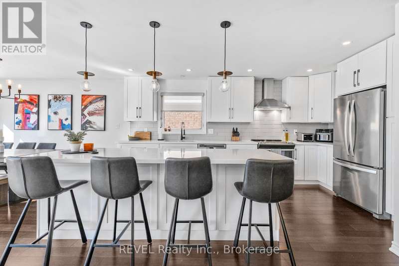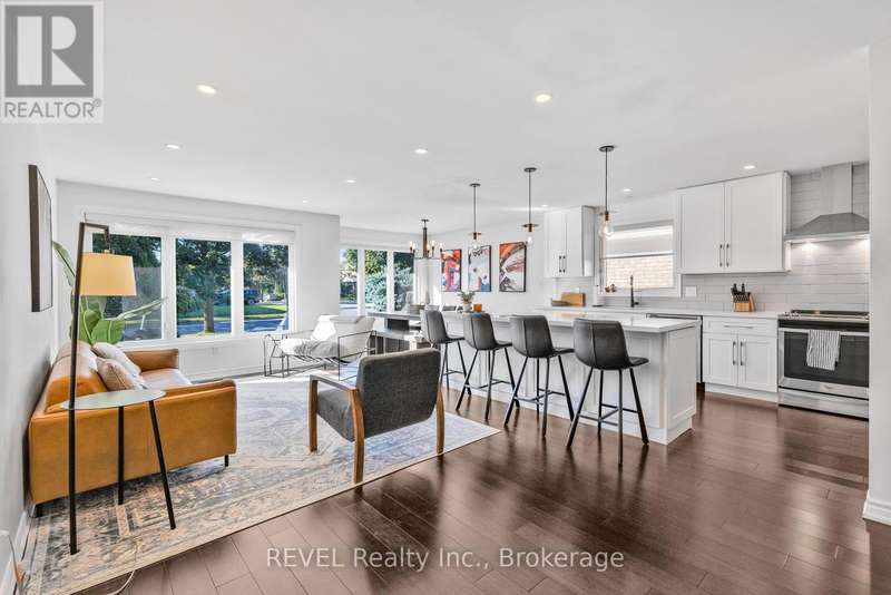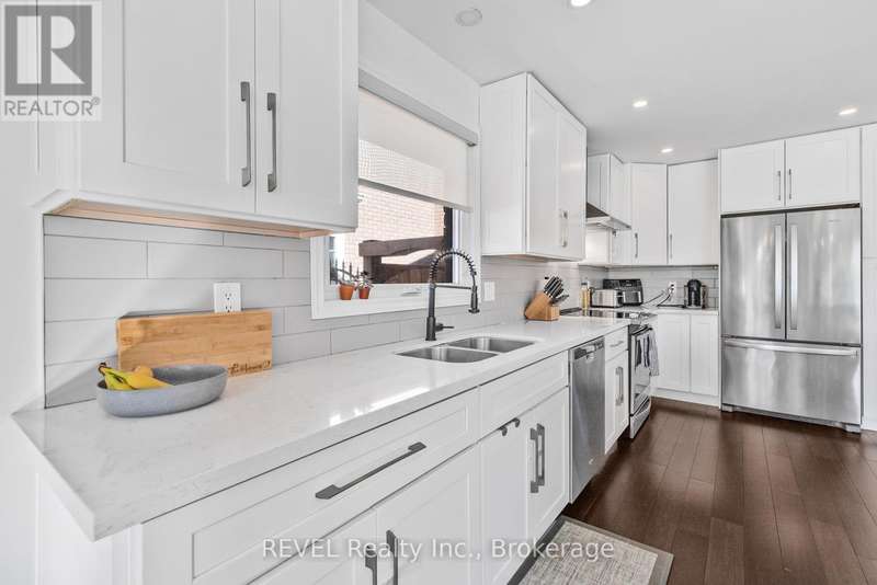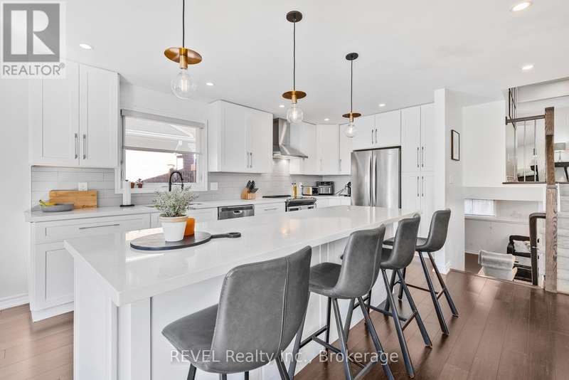 Welcome to this fully remodelled 4-level back-split in a great family friendly neighbourhood! Professionally renovated top to bottom in 2018, this home offers an open-concept main floor with a 9-foot island, quartz counters, stainless steel appliances, and a gorgeous custom kitchen. Upstairs youll find 3 bright bedrooms, including a primary with a custom walk-in closet and ensuite access to a 5-piece bathroom with a double vanity. The lower level boasts a spacious family room with high ceilings, a cozy floor-to-ceiling brick fireplace, and a walk-up to the oversized patio (2018). The basement features a large den/office, custom laundry room (2018), cold storage, and plenty of extra storage. Additional upgrades: bamboo engineered hardwood and upgraded staircase (2018), roof (2017), furnace (2016). Move in and enjoy with peace of mind knowing the big-ticket items are done! (id:7434)