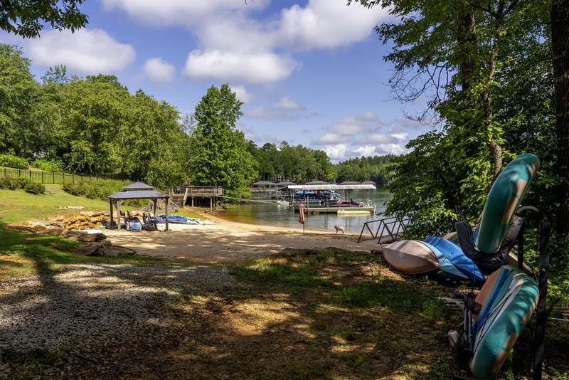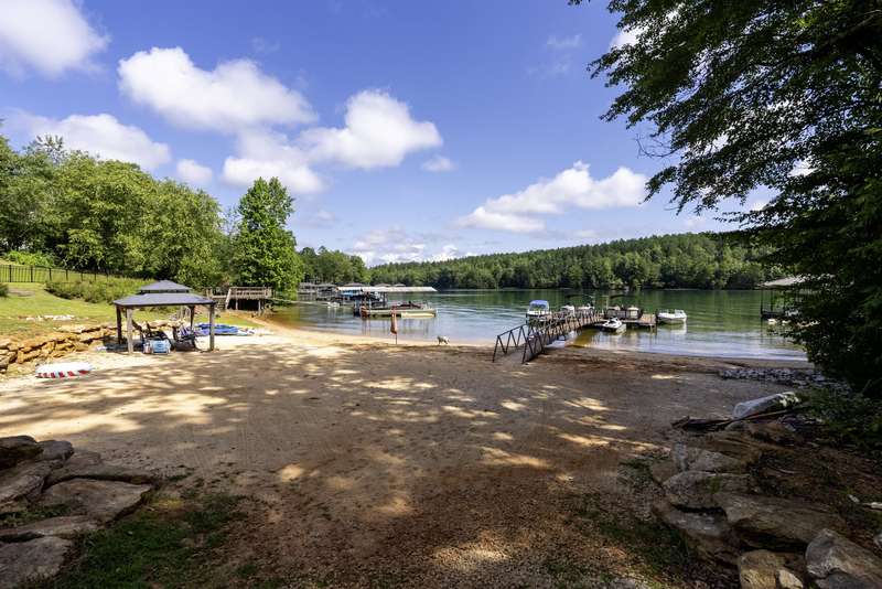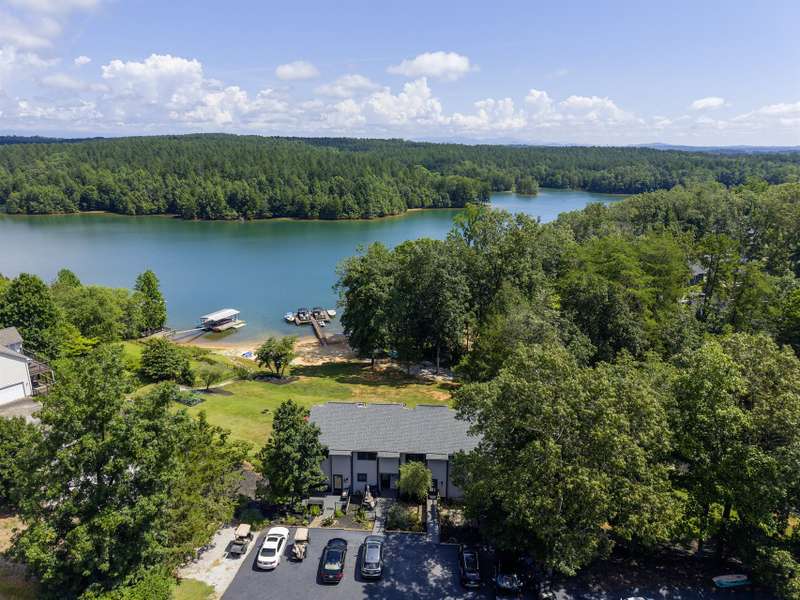 Sitting in a deep-water bay, this two-bedroom retreat includes shared 1/4 ownership of a private sandy beach and dock just steps away?perfect for sunning, swimming, or revving up for a day on the shores of Lake Keowee. Enjoy two levels of outdoor living on a main-level deck and a patio below, offering peaceful, open water views and space to relax or entertain. A gravel path and gentle grass yard leads to your dock by foot or golf cart. With no stated annual HOA fee and just $225 per unit annually for shared lawn maintenance, this property is an easy keeper for both investors and personal use. This short- and long-term rental friendly townhome offers Lake Keowee waterfront living at a great value. Located just minutes from downtown Seneca and less than twenty miles from Clemson University, this quaint gem checks all the boxes for location, lake access, and investment potential. Just around the corner is High Falls County Park, a 46-acre lakefront park packed with amenities including picnic shelters, boat ramps, fishing pier, tennis and basketball courts, a swimming area, miniature golf, and more. Ready for immediate use. Start enjoying lake life today!** A/C installed February 2022, Dock April 2021, Roof and Siding September 2020, New asphalt parking and drive July 2024, Decks and Front Walk October 2020 and Septic July 2023 **