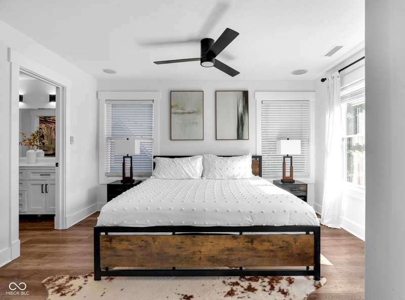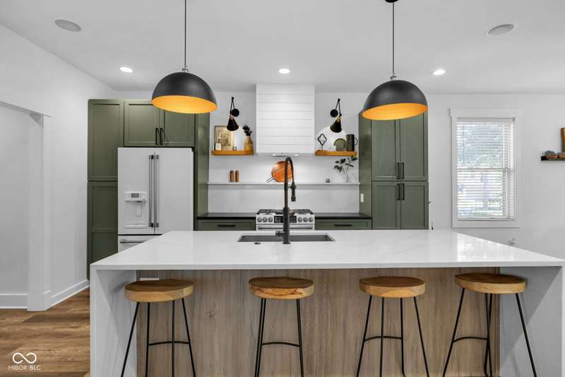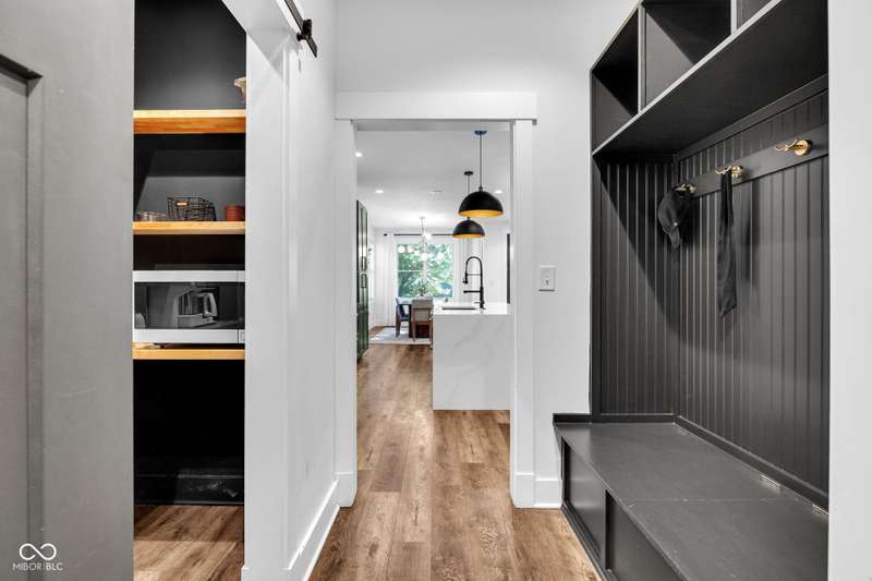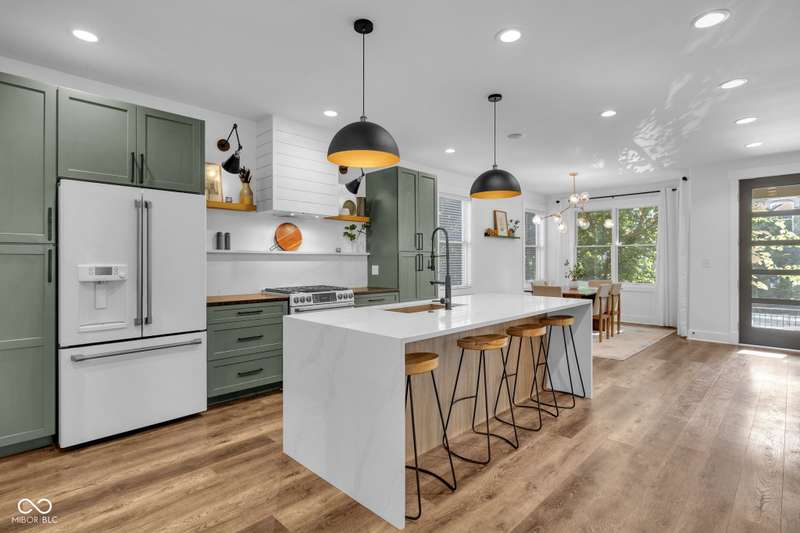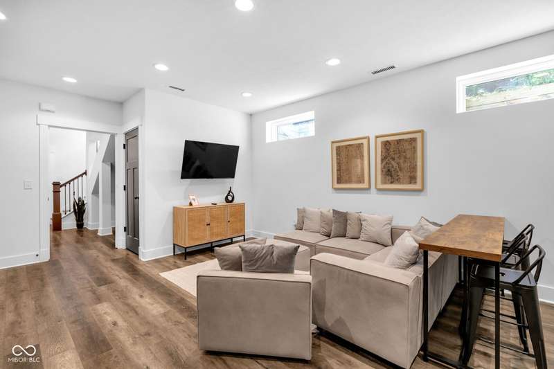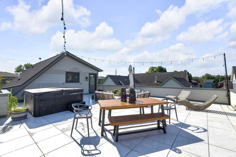 This is definitely one-of-a-kind opportunity in Old Northside! This sleek, modern home offers flexibility as a spacious single-family home or generate income from three distinct units. Featuring 6 bedrooms, 5.5 baths, and 3.5 kitchens, the main floor boasts an open kitchen with Cafe appliances open to living and dining with vast natural light, while the second floor showcases a luxurious primary suite with walk-out balcony and huge closet + two adjacent bedrooms and bath! The third floor is perfect for entertaining with a half kitchen, full bath, and rooftop deck with hot tub overlooking the skyline. Additional spaces include a basement with two bedrooms + full bath, full kitchen, and plus a carriage house with 1 bed/1 bath, kitchen, and outdoor patio. A three-car garage completes this rare find-steps from the Monon Trail, Mass Ave, Bottleworks, and more!