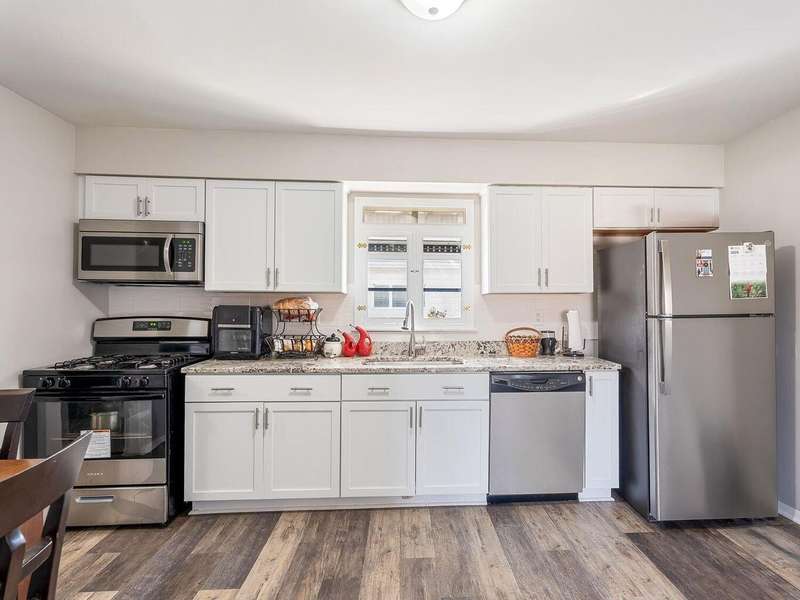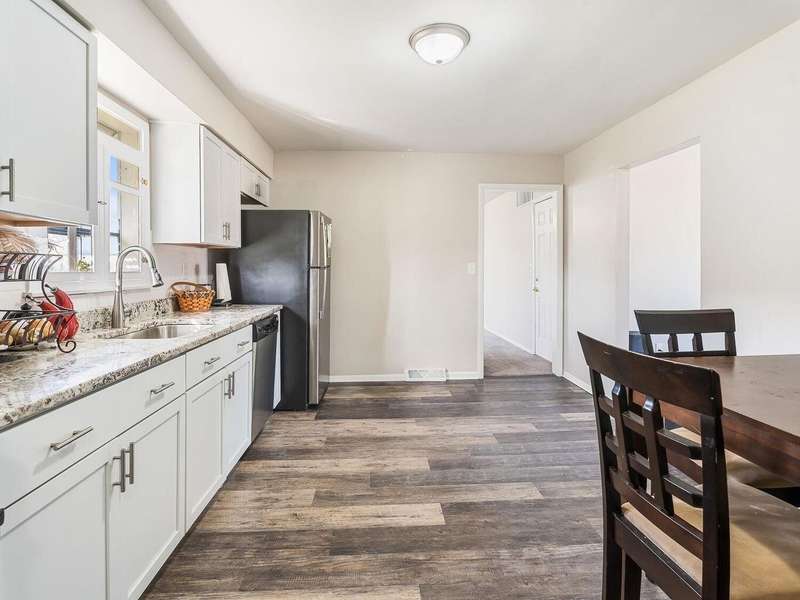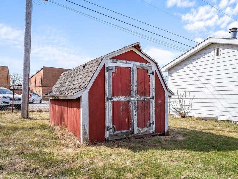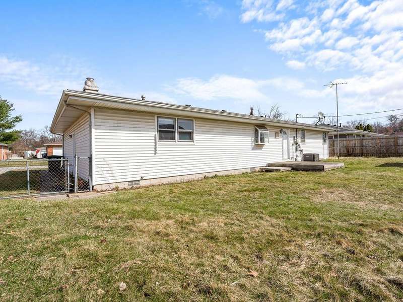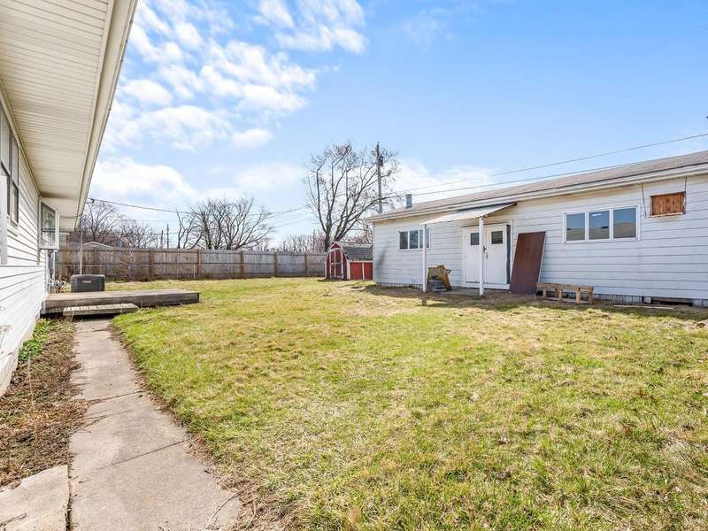 Nicely remodeled 3 bedroom ranch with fireplace in family room; main bedroom has 1/2 bath. Custom blinds throughout! A separate 646 sq. ft. back building could be a separate apartment, all building materials are included (except furnace and a/c) it just needs put together- perfect for a handy man!