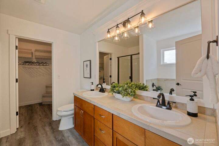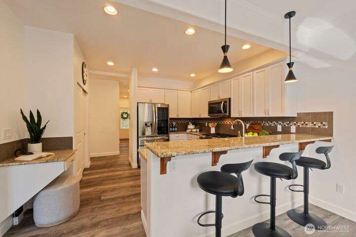 Welcome home to a BETTER THAN NEW 5-bedroom retreat tucked in a quiet cul-de-sac. Elegant finishes & a bright, open layout are the perfect backdrop for both everyday living & stylish entertaining. A MAIN-LEVEL BEDROOM w/ an adjacent shower offers flexibility as a private guest suite or a comfortable home office. Step outside to a FULLY-FENCED YARD w/ lush, LOW-MAINTENANCE TURF—beautiful year-round w/ none of the hassle. For pets or play, a SEPARATE GATED CEMENT area adds function & peace of mind, giving everyone their own space outdoors. Just minutes from Silver Lake, dining, shopping, and everyday essentials, plus effortless highway access for easy commuting. This is where PRIVACY, ELEGANCE & CONVENIENCE come together—READY TO ENJOY LIFE!