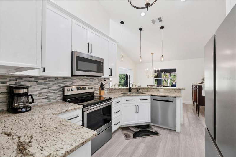 Live Your Best Florida Waterfront Life! This beautifully updated, move-in-ready home blends modern comfort with the laid-back charm of coastal living—just 30 minutes from the Gulf beaches and minutes from top restaurants, shopping, arts, entertainment, farmers markets and medical facilities. Enjoy peace of mind with a 2023 metal roof, tankless water heater, and mini-split A/C in the insulated garage. Inside, you’ll find stylish finishes and newer appliances that make daily living effortless. Step outside to your expansive almost 700 sq. ft. screened lanai, private dock, and tranquil Koi pond—perfect for relaxing or entertaining. The property also offers RV parking with water and electric hook-ups, PVC fencing, and a spacious 0.28-acre lot with 120 ft. of canal frontage. Experience the best of the Florida lifestyle—sun, space, and serenity—all just minutes from everything you need!
