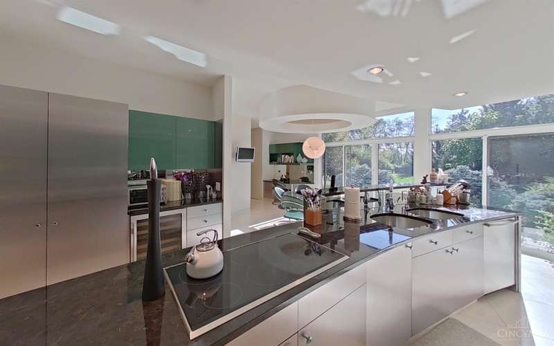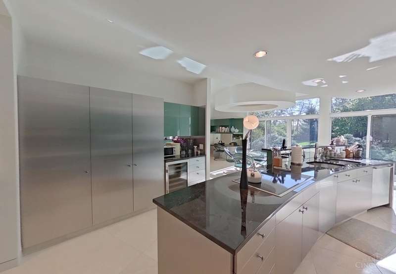 A Sanctuary in Rollman Reserve in cul-de-sac setting for Every Phase of Life! The elegant first-floor primary suite is a true retreat, featuring dual spa-inspired baths with marble floors designed for ultimate comfort and privacy. Two additional generously sized bedrooms each boast their own ensuite full baths, offering luxurious accommodations perfectly suited for family living! The limestone entry and walls of windows throughout frame the view of perennial gardens. The chef's kitchen is equipped with top-of-the-line Wolf and SubZero appliances while the two story great room offers stunning sky views. The custom lighting highlights the architectural brilliance of curved walls and open spaces to create a true showcase. Check out the 3D Virtual and Drone Tours!