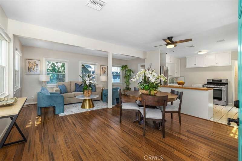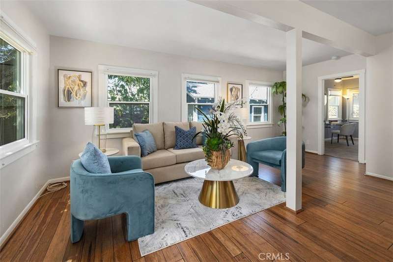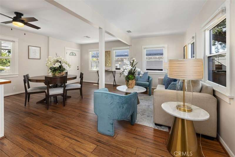 Tucked behind a classic white picket fence in North Monrovia, this charming bungalow feels like a page from a storybook. The shady front yard, accented with mature lemon trees, leads to a welcoming front porch - perfect for morning coffee or evening chats. Inside, a light-filled living and dining area flows effortlessly into the cozy kitchen. Sunlight streams through energy-efficient windows, highlighting the gleaming hardwood floors and filling both bedrooms with a bright, airy feel. Modern upgrades include a new roof, upgraded electrical, a new central AC system, updated plumbing, earthquake retrofitting, EV Charger and the added benefit of fully paid-off solar panels for energy savings. In the back, the private yard invites you to unwind in the jacuzzi beneath the stars or enjoy sunny afternoons with friends. A detached garage with laundry area adds convenience, making this home as practical as it is inviting. This is more than just a house - it’s a place where comfort, character, and modern living come together beautifully. Situated in North Monrovia, just minutes from the historic downtown district with its charming shops, inviting restaurants, and small-town ambiance, yet offering easy access to the 210 Freeway and Downtown LA.