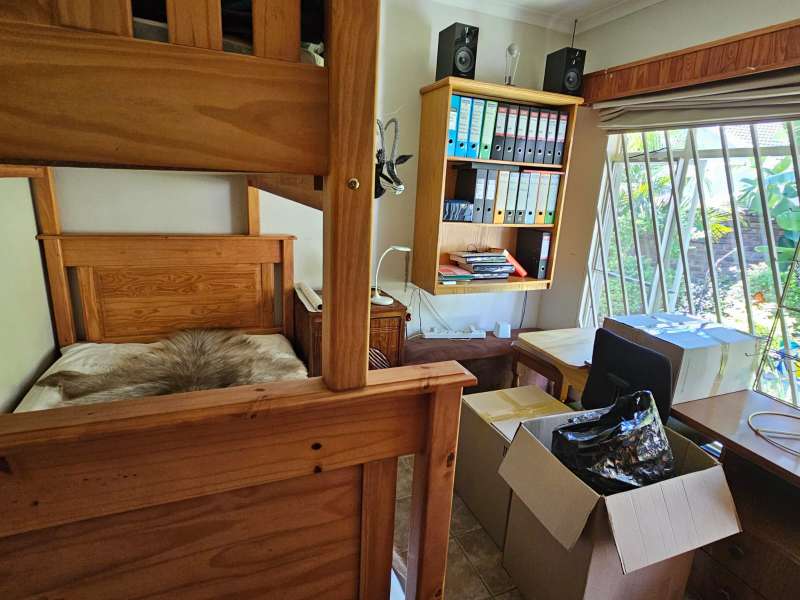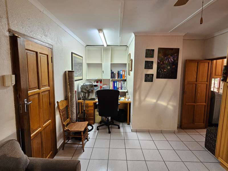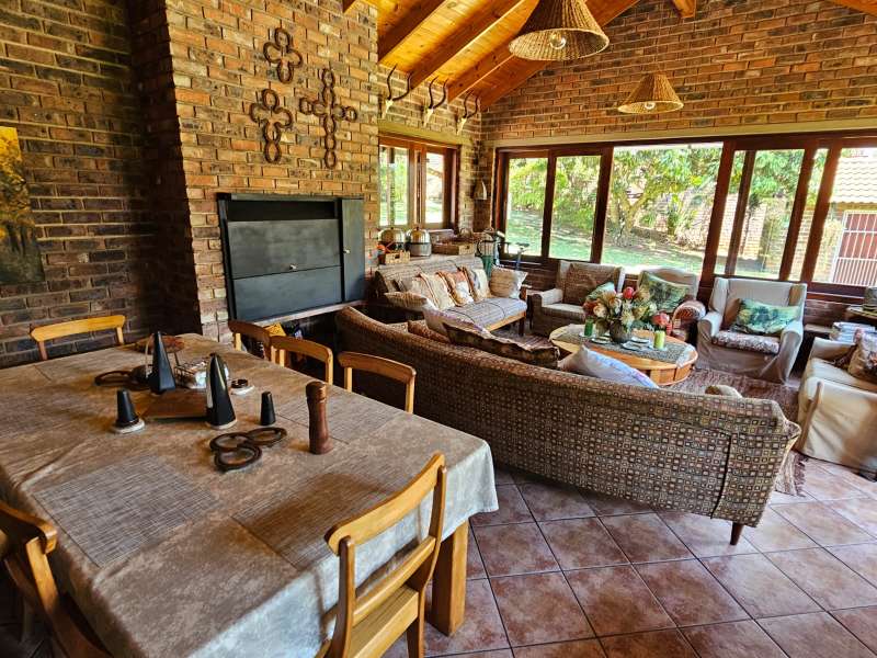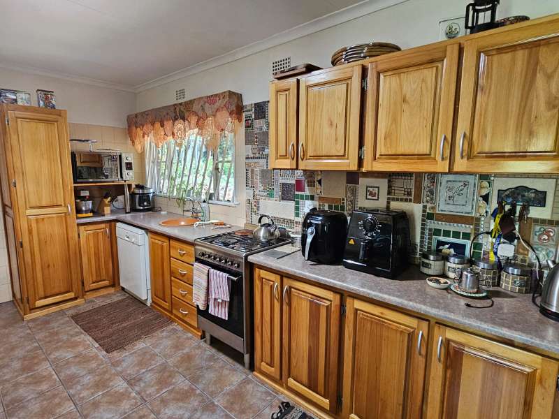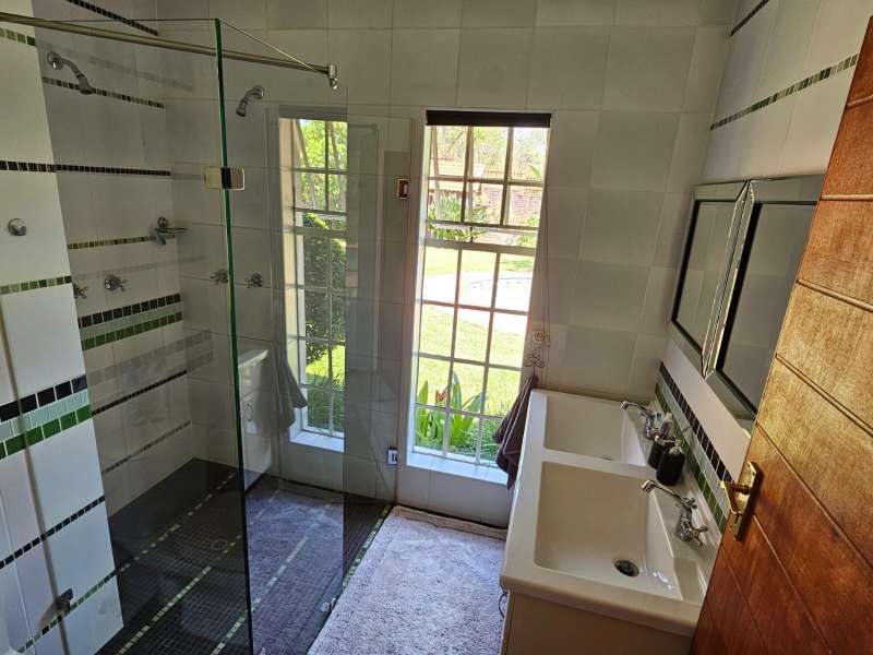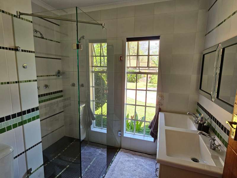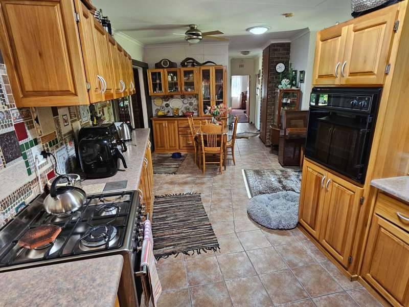 When you enter the gate, a beautiful garden awaits you. The house consists of 3 spacious bedrooms and 2 bathrooms, very modern (MES). Beautiful kitchen and separate scullery, lounge and dining room with separate TV room. Absolute stunning. The veranda is closed with wooden frames, doors leading to pool area and built-in braai to create the perfect picture. Outside shower and toilet for pool area. Brick store room that fits with tiled roof and face brick. The garden at pool is absolutely stunning. Big open back yard with lovely trees. Excellent security, double brick walls with palisade on top. Full security system and alarm system. The house is fully running on its own electricity with 18 large panels, 3 batteries and converter. This house is not a time waster. Call us to view this property!!!