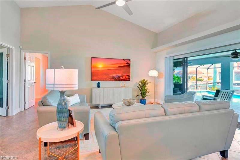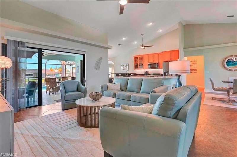 Boater's Paradise Meets Resort Living - Best Priced in the Neighborhood! Step into your dream lifestyle with this TURNKEY Gulf Access Pool Home in the heart of SW Cape Coral-just a 10-minute boat ride to the Caloosahatchee River and beyond to open waters. Whether you're docking a 30+ ft vessel on your newly updated (2022) composite dock with 12K lb lift, or paddling to the Bimini Basin, this home is your gateway to waterfront adventure. Inside, luxury meets comfort: 3 spacious bedrooms + den/office + bonus room, Chef's kitchen with granite counters and sleek tile floors throughout, Spa-inspired master bath with dual sinks, walk-through double shower, and soaking tub! Air-conditioned 3+ car garage with extended depth for all your toys, Mature royal palms and a horseshoe driveway offer curb appeal and ample parking. Outside, it's pure paradise: Oversized resort-style pool perfect for sunset cocktails, No flooding history-peace of mind included! Minutes from Sanibel, Fort Myers Beach, downtown Cape Coral, and the new Margaritaville & Sunseeker Resorts This is more than a home-it's a lifestyle upgrade. Priced to move, packed with upgrades, and positioned in one of Cape Coral's most desirable boating neighborhoods. Don't miss your chance to own this waterfront gem. Call today for your private showing-and start living the dream.