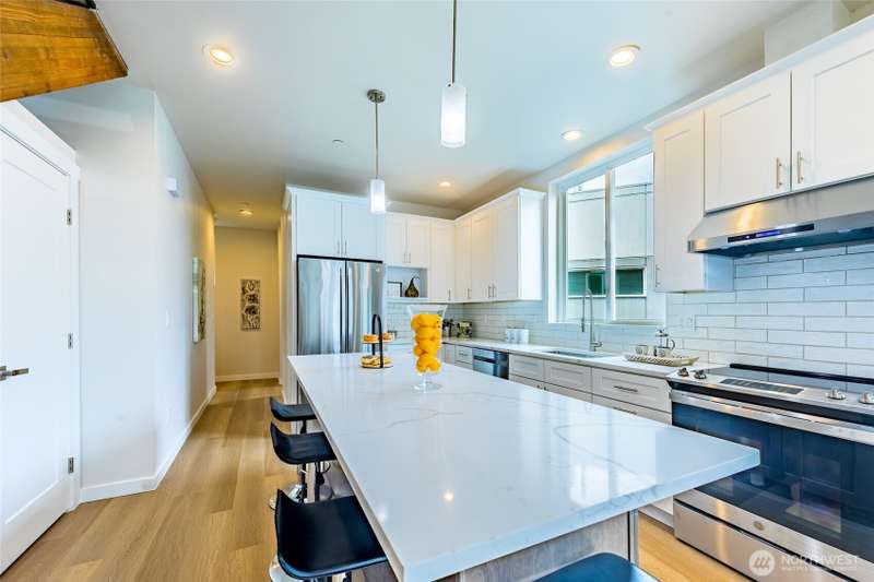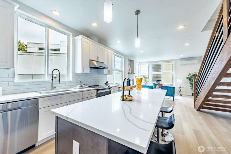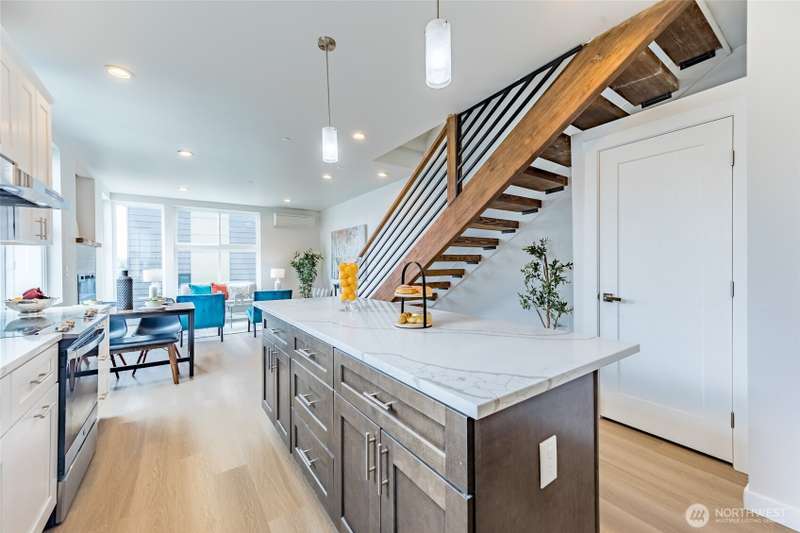 Wonderful north Beacon Hill townhome amid private setting. Well-appointed unit backs to greenbelt and conveniently located at the confluence of I-5 & I-90, just minutes to downtown Seattle and eastside employment centers. Nearby Eastlink light rail station expects to open in 2026 further enhance its accessibility. This spacious 1,640 sqft unit features 3Br/3Ba, large primary suite offers walk-in closet, dual vanity and plush rain shower. Efficient electric fireplace adorns the living room, generous kitchen offers S/S appliances, extensive island & abundance of cabinets. Notable highlights include floor to ceiling windows, 1-car garage & panoramic rooftop deck.