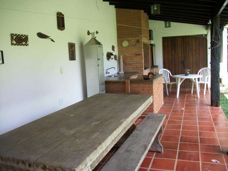 Casa com uma grande sala de 2 ambientes com lareira, sala de jantar, copa e cozinha, sala de tv, 4 dormitórios, 2 suites, adega, lavabo, churrasqueira, galpão, jardim com árvores frutíferas, garagem para 5 vagas (2 cobertas), rua super tranquila com praça na frente. A casa precisa de reforma.