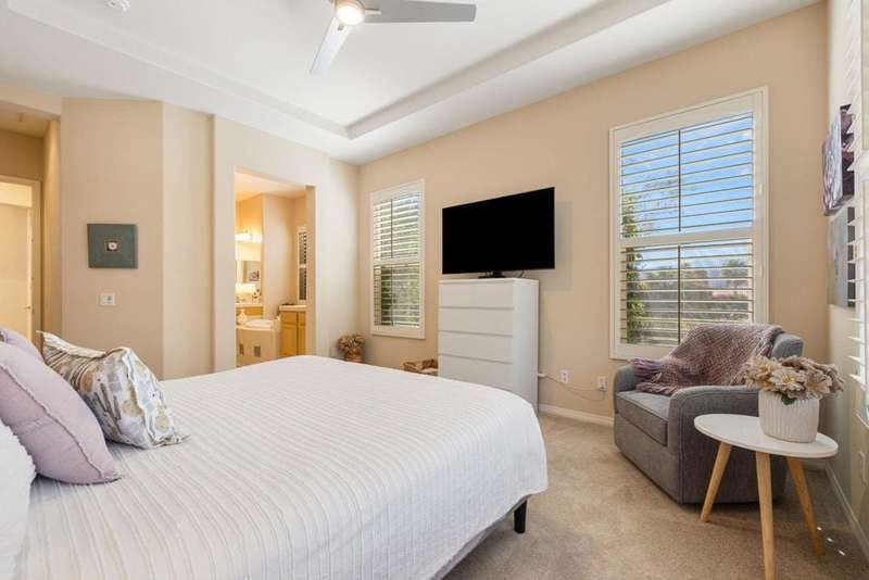 Nestled in the prestigious Mission Shores community of Rancho Mirage, this stunning lakefront residence offers the perfect blend of elegance, comfort, and tranquility. Boasting breathtaking water views, this meticulously maintained home features 10-foot ceilings and an inviting open-concept great room, ideal for seamless indoor-outdoor living. With three spacious bedrooms and three bathrooms, including a private attached casita, this property provides ample space for both relaxation and entertaining. A well-appointed wet bar enhances the home's appeal, while the sparkling pool invites you to unwind in your own private oasis. Situated on a quiet, interior street, this exceptional home enjoys visits from graceful swans gliding across the lake. Offered at an incredible value, this rare gem presents an unparalleled opportunity to experience lakefront living in one of Rancho Mirage's most sought-after communities. Don't miss your chance to call this serene retreat home!
