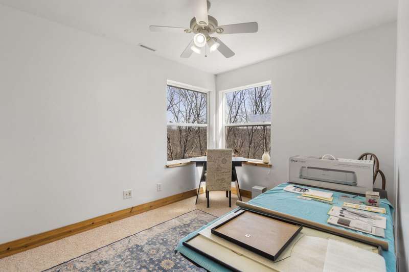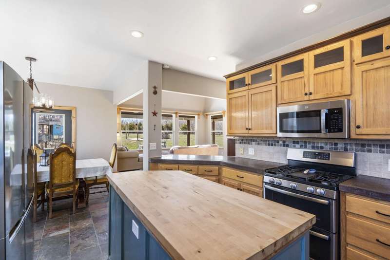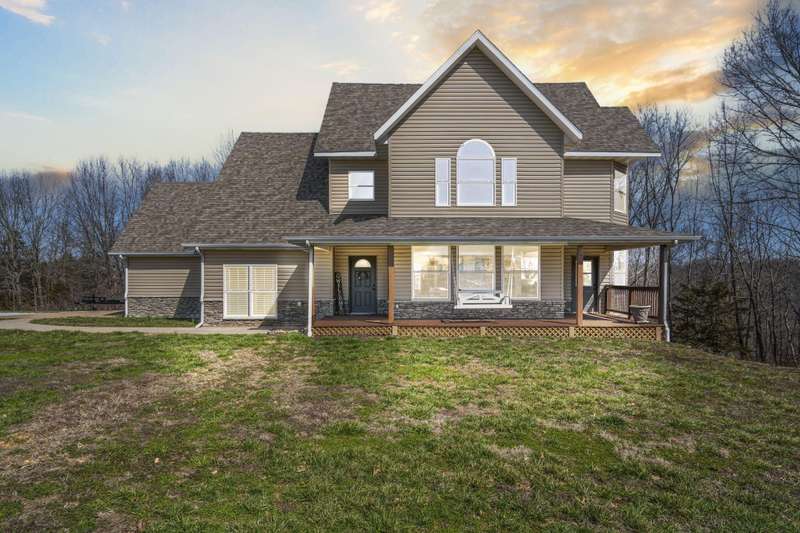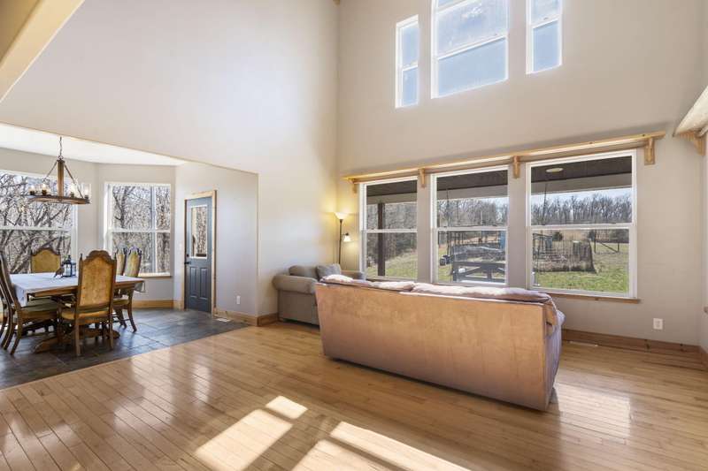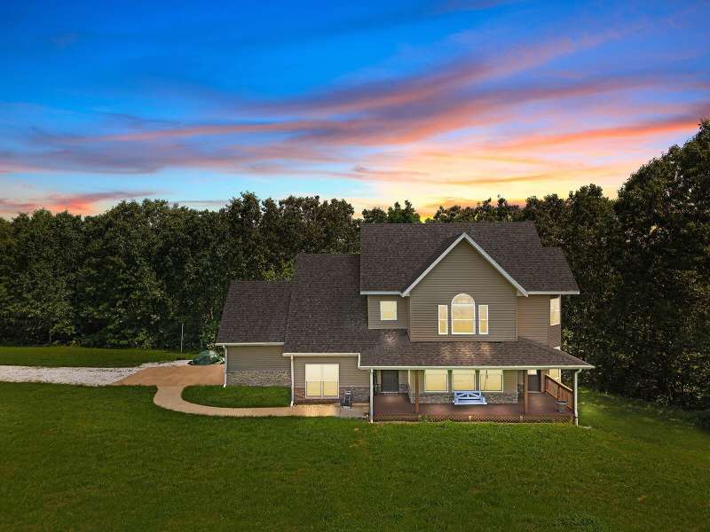 Welcome to this breathtaking countryside estate where space, opportunity, and rural charm collide. Nestled on a stunning 10.17-acre tract of functional land, this custom built home spans nearly 4,000 square feet that is bathed in natural light, where you are welcomed by soaring ceilings in the centralized open-concept living, dining, and kitchen areas. The kitchen features an abundance of custom cabinetry, sleek concrete countertops, and a gas range. The spacious main-level primary suite offers incredible views of the surrounding landscape and is complete with a well-appointed ensuite featuring a walk-in shower, jetted tub, and walk in closet. Convenience abounds with a dedicated home office, mudroom, laundry room, and guest bath all on the main floor. On the second level, two generously sized bedrooms and a full bath are complemented by an elegant balcony overlooking the great room, offering panoramic views of the property. The third-story bonus room and bath provide increased functionality--whether utilized as additional living quarters, a media room, game room, or home classroom. A fully equipped walk-out basement, currently operating as a successful Airbnb, adds incredible versatility. This space includes two bedrooms, a full bath, kitchen, and its own laundry--ideal for rental income, a guest suite, or multigenerational living. The acreage here makes this property a dream for hobby farmers and homesteaders alike. A spacious garden, chicken coop, and room for additional features in the outbuilding provide endless possibilities. The majority of the land is open and currently used for hay production--ideal for livestock--while the wooded areas provide stunning foliage and privacy. You'll also find an inviting outdoor fire pit area, a poured concrete back patio, a large front porch complete with a charming swing. Tucked away at the end of a private drive, this home offers the best of both worlds--peaceful seclusion yet just minutes from local amenities!