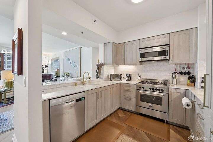In the heart of Rincon Hill/South Beach, Residence 6C is available for the first time. The pride of ownership is experiencing an unparalleled lifestyle at The Harrison, San Francisco's iconic full-service luxury high-rise. This stunning 2-bedroom, 2-bath CORNER unit with a private balcony offers a flowing open-concept layout, where floor-to-ceiling windows invite abundant natural light, generous closet space, and exquisite finishes throughout. The chef's kitchen boasts Bertazzoni & Sub-Zero appliances, Italian marble countertops and tile. Wall-to-wall Siberian oak flooring, The unit comes with a washer/dryer. Also includes 1-car valet parking, a private wine locker in a temperature-controlled cellar, and a dedicated storage unit conveniently located on the same floor as the unit. The Harrison is located steps from the Financial District, Union Square, the Embarcadero waterfront, world-class dining, and shopping. Easy access to the Tech Hub ; public transit, Routes 101 & 280, and the Bay Bridge makes commuting a breeze.