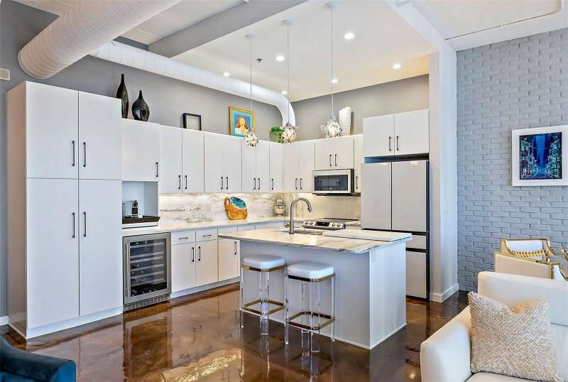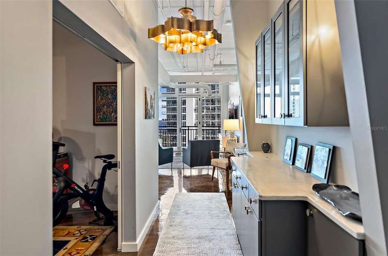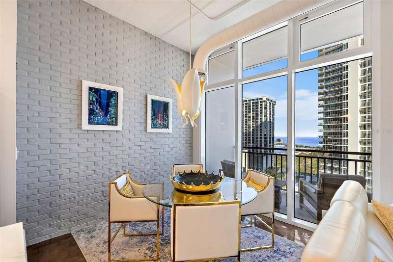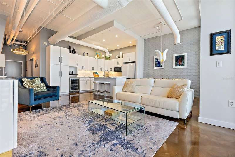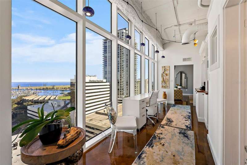 This one-of-a-kind penthouse at The McNulty Lofts is designed to captivate from the moment you step inside. Inundated in natural light, the spacious layout is brought to life by floor-to-ceiling windows that span the entire east side of the condo, offering stunning views of Tampa Bay. This extraordinary residence effortlessly blends modern luxury with breathtaking scenery, creating a truly unparalleled living experience. The breathtaking views are perfectly matched by the exquisite designer-grade finishes throughout this stunning penthouse. The light and airy kitchen has been thoughtfully updated with luxurious marble countertops that flow seamlessly into the backsplash and center island, creating a cohesive and elegant design. The all-white custom cabinetry, complete with soft-close drawers and pull-out racks, offers both style and functionality, while a built-in nook provides the perfect space for a coffee bar and wine fridge. Completing the space are all-new Bespoke appliances, including a state-of-the-art stove, oven, dishwasher, refrigerator, and microwave, ensuring a modern and sophisticated culinary experience. The open concept living spaces serve as the vibrant heart of this stunning penthouse, offering an organic flow that perfectly complements the true split floor plan. The unique layout includes a spacious sitting area off the primary suite, designed to double as the ultimate workspace. Immersed in natural light, this room redefines the home office experience. Say goodbye to uninspiring, tucked-away workspaces, making this one of the most enviable home offices in downtown St. Pete. This stunning office space doesn’t sacrifice functionality for beauty. Custom-built bookshelves and storage line the back wall, providing ample space for organization while enhancing the room’s sophisticated design. The sitting room seamlessly transitions into the expansive primary bedroom, where the floor-to-ceiling windows continue to impress. Imagine waking up each morning to breathtaking, panoramic views of the sun rising over Tampa Bay—a daily masterpiece to start your day. Or sleep in with automated Lutron black out window treatments in your primary. The luxury of this penthouse extends into the primary walk-in closet. This generously sized closet boasts custom-built features, offering two thoughtfully separated sections and an entire back wall of sleek shelving—perfectly suited to showcase your collection of bags and shoes with style and ease. The second bedroom rivals the primary in size and features a versatile layout with an ensuite bathroom. An oversized walk-in closet with custom-built shelving provides ample storage, while soaring 11-foot ceilings create space for a loft above the closet and laundry room—ideal for seasonal items. Additional upgrades include Lutron window treatments, designer lighting, and a high-performance Trane HVAC system (2022). McNulty Lofts offers a boutique living experience with only 83 residences, on-site management, a fitness center, and a newly renovated lobby. Residents enjoy two private parking spaces and a prime Downtown St. Pete location. Step outside to top-tier restaurants, shops, serene parks, museums, and iconic theaters like The Dali Museum and The Mahaffey Theater. With landmarks such as St. Pete Pier and Vinoy Park nearby, this penthouse blends luxury, culture, and convenience for an extraordinary downtown lifestyle.