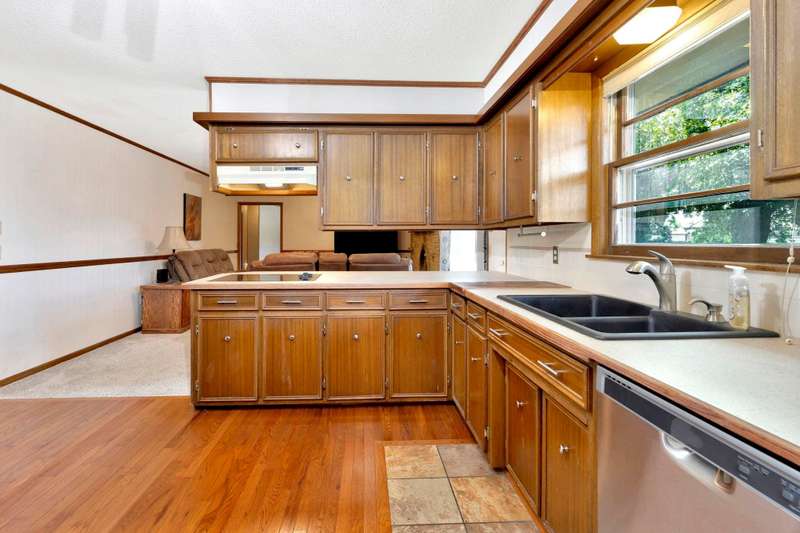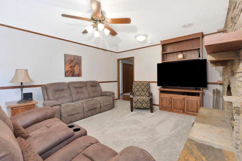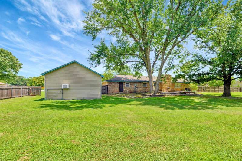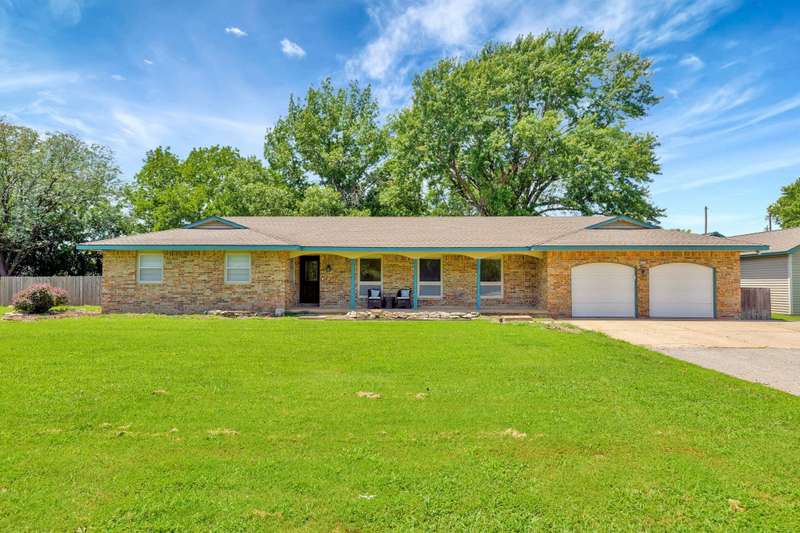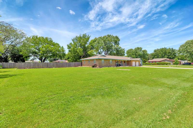 Tucked on a 0.92-acre corner lot with mature trees and exceptional storage buildings in the Valley Center School District, this full-brick ranch offers space, flexibility, and a quiet setting with easy access to highways. Lovingly maintained by the same owner for 25 years, it features a traditional floor plan with both formal and casual living spaces, including a front room that works well as a living room or home office, a formal dining area, and a cozy family room with a stone fireplace. The oversized primary suite is a rare find for a home of this era, complete with an ensuite bath and walk-in closet. Recent updates include a BRAND NEW ROOF (installation scheduled), new carpet in most rooms (2024), new garage door openers with app connectivity, new siding on two sides of shop (scheduled), and a brand-new HVAC system (2024). The all-electric home also includes a pantry, mud room, 2.5 bathrooms, and a covered front porch perfect for relaxing evenings. Outside, you'll find a fenced backyard and a variety of detached buildings that are hard to come by: a 960 SF building, a 26' x 24' carport, and a separate storage shedideal for hobbies, storage, or additional covered parking. The large outbuilding is equipped with a window A/C unit and a heater that operates with a propane tank (not currently in place) while the attached two-car garage offers even more convenience. Homes in this area are popular for their large lots, extra outbuildings, and peaceful atmospherethis one checks all the boxes. Don't miss!