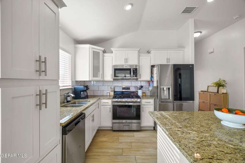 Welcome to 15133 Competition Avenue in El Paso! This delightful 4-bedroom, 2-bath home offers 1,487 square feet of comfortable living space. The open concept layout connects the living, dining, and kitchen areas seamlessly. The kitchen and bathrooms both feature elegant granite countertops. The home also includes spacious bedrooms, refrigerated air for comfort, and a beautifully landscaped backyard with artificial grass. It's the perfect blend of style and functionality. Schedule your private showing today!