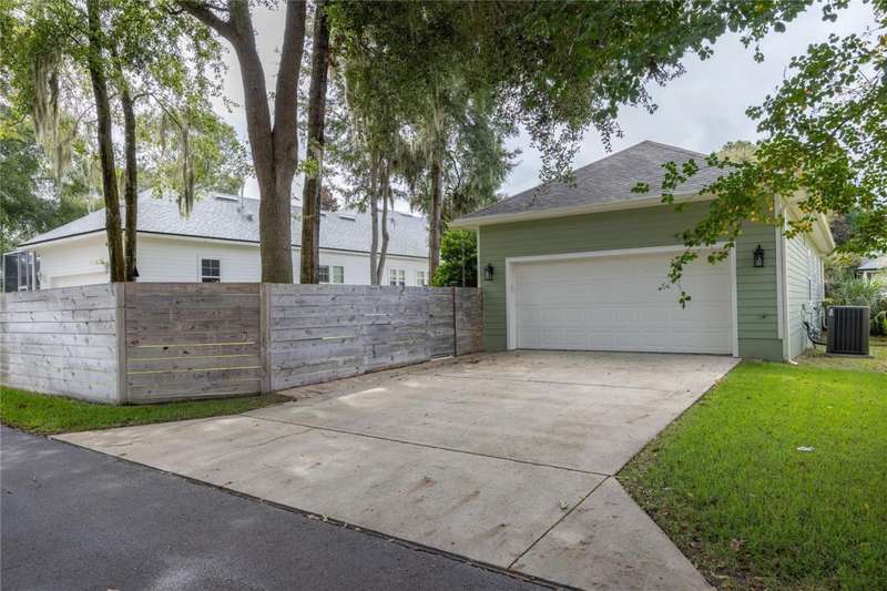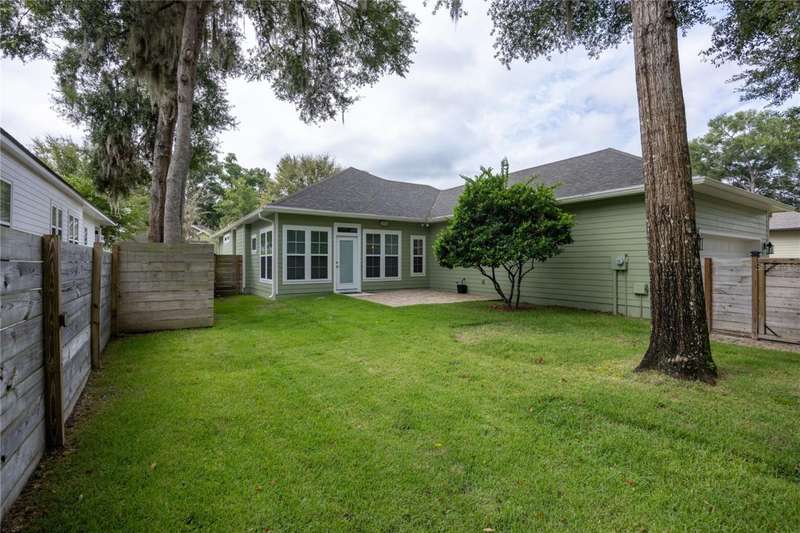 Welcome to this beautifully upgraded 3 bedroom 2 bathroom home in the tranquil community of Town of Tioga. This home is tucked away in Newberry's most sought-after, family-friendly neighborhoods. This residence offers the perfect blend of comfort, privacy, and convenience. Step inside to discover a thoughtfully designed layout featuring a spacious living room perfect for both relaxation and entertaining. This home features many upgrades with a brand-new roof (2025), additional updates completed in 2022 to include: refreshed color palette on all interior walls and kitchen cabinets, quartz countertops and elegant backsplash in kitchen, stainless steel GE appliances, vented stainless range hood, quartzite countertops in bathrooms, LVP flooring in all living areas, carpet in primary bedroom, light fixtures in master bath, kitchen, office, laundry room, and exterior surround sound in living room and exterior speakers on back patio, additional storage and modified existing cabinets to add more storage. The Trane HVAC system was replaced in 2019 and serviced by Liberty Air. The gas hot water heater is a commercial-grade unit and was replaced in 2018. A whole-house water filtration system (Osmosis Drinking Water System) features a line to the refrigerator for filtered water and ice. Gas connection available for gas range and grill/firepit on back patio. The home features an efficient split floor plan with modern light fixtures that enhance its traditional charm. The home has ample storage space provided by plenty of cabinets and built-ins throughout. There is a dedicated study with beautiful glass pocket doors off the front entrance and a sunroom that looks out over the lush fenced-in backyard. The primary bedroom features a walk-in closet and an en-suite bathroom with a step-in shower, large tub, and updated vanities with quartzite countertops. A laundry room off the garage with a newer Samsung washer and dryer. The open-concept floor plan seamlessly connects the cozy living area, kitchen, and dining area, making it great for everyday living and hosting. Situated on a tree-lined street, this home features a beautifully manicured yard with mature landscaping. With both curb appeal and a serene backyard retreat this home is a rare find in the Town of Tioga. With its serene location, abundant space, and versatile layout, this home is a rare find in the Town of Tioga. Don't miss the opportunity to make it yours. Town of Tioga offers many wonderful amenities, including a community pool, tennis/pickleball courts, basketball court, playground, soccer field, and a maintained walking pathway along the esplanade. Excellent neighborhood in a great school district, conveniently located near hospitals, highways, and shopping centers. Embrace the walkable lifestyle and venture to fantastic local restaurants such as Blue Highway Pizza, Local Provisions, and Cilantro Tacos, as well as medical offices and Gainesville Health and Fitness.