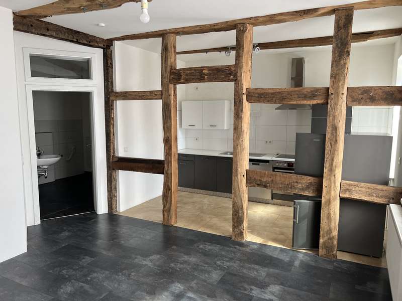 This property is presented to you by: Jan-Phillip Adam & Luca Böckstiegel Office: 05201 - 15 88 02 1 Central and chic old building apartment | approx. 47 m² | 2 ZKB | Halle (Westf.) This charming and centrally located apartment in Halle is located on the 1st floor of an 8-party house that was completely renovated in 2015. The apartment is vacant and can be occupied at short notice. The heart of the apartment is the spacious living-dining-cooking area with stylish wooden lattice windows. The fitted kitchen, which can be taken over from the previous tenant for a down payment, is spatially separated by exposed half-timbering. The interior bathroom has a modern design and is rounded off by a spacious walk-in shower. Please understand that only written inquiries with full address and telephone number can be processed. Have we aroused your interest? Then please contact us, we look forward to hearing from you!