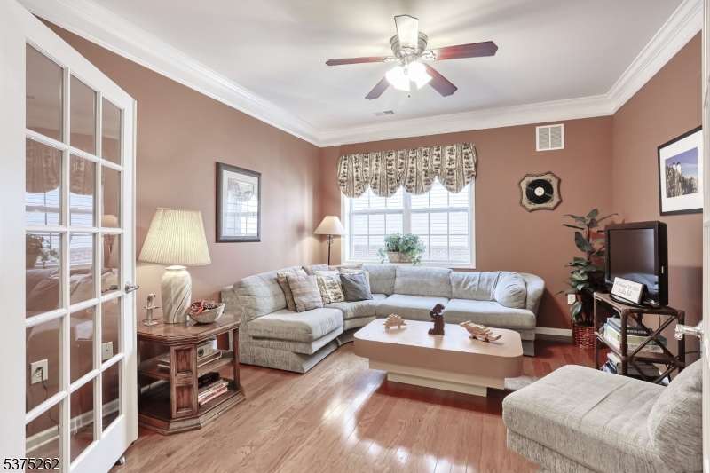 Beautiful, move-in ready, updated 3rd floor unit in building 2 is in the more scenic area of the community. This 1768 SF Colfax model in Wanaque Reserve, a Del Webb active adult 55+ community, is in one of the newer buildings. The home features hardwood floors, a primary bedroom ensuite with FB, tray ceiling and WIC, 2nd BR, FB, EIK with granite counters, tiled backsplash and SS appliances, LR, DR and den with French doors, adding a touch of elegance. The LR sliding doors open to a private balcony. Amenities include a deeded underground parking spot and 24-hour security. Another benefit of this home is a brand new water heater and the required water prevention equipment. The complex was totally renovated in 2022. The 20,0000 SF clubhouse has a cafe, ballroom, exercise room, theater, sauna, indoor and outdoor pools and more than 45 clubs and activities, which include the travel club (cruises, day trips, casino trips) tennis, pickleball, canasta, poker, golf, etc. Wanaque Reserve offers a luxurious lifestyle for its residents with a focus on modern amenities, security and a sense of community. The recent renovation adds a fresh and updated living environment.