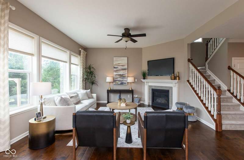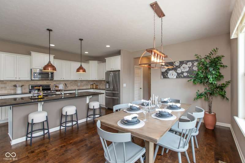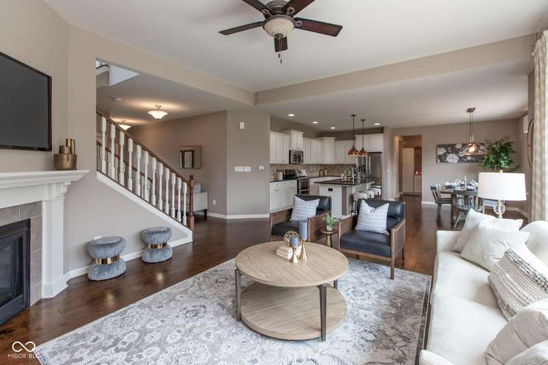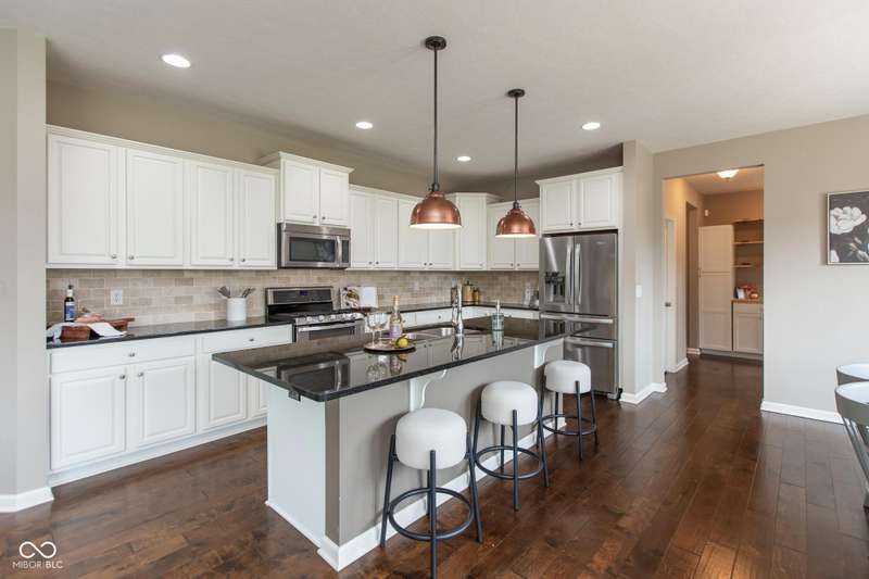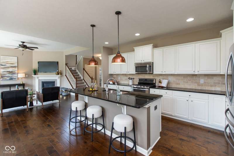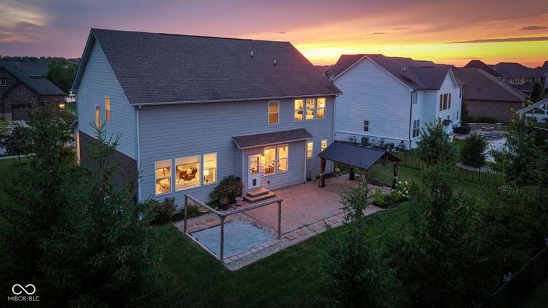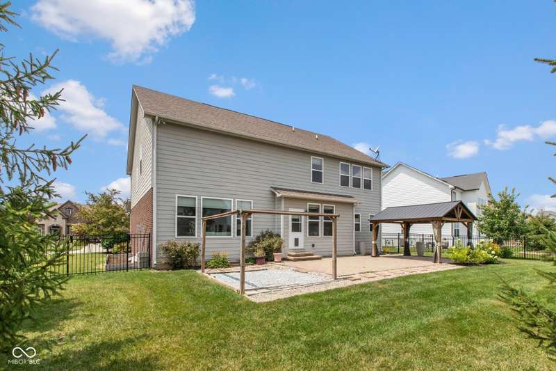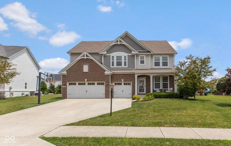 Welcome to this beautifully designed 4 bedroom, 4.5 bath home with a finished basement, 3 car garage, and access to a neighborhood pool! Upon entry, you're greeted by a dedicated office space, perfect for remote work or study. The heart of the home is the open-concept kitchen featuring crisp white cabinetry, stainless steel appliances, a large center island with seating, and a built-in coffee bar with extra appliance space, ideal for daily convenience and entertaining. Rich hardwood floors flow throughout the main level, connecting the kitchen to the spacious dining area and into the great room, where oversized windows flood the space with natural light and a cozy fireplace anchors the room. Just off the dining area, step outside to an expansive patio and fully fenced backyard, perfect for gatherings, grilling, and play. Upstairs, the spacious primary suite is a true retreat, boasting tray ceilings, abundant natural light, and a luxurious en-suite bath with dual sinks, a soaking tub, glass-enclosed shower, and a generous walk-in closet. Three additional bedrooms and a bonus room complete the upper level. The finished lower level offers the ultimate space for entertaining or relaxing, featuring stylish flooring, a massive rec room, and a full bath. Located in a vibrant community with a pool and sidewalks, this home blends comfort, functionality, and style in every detail.