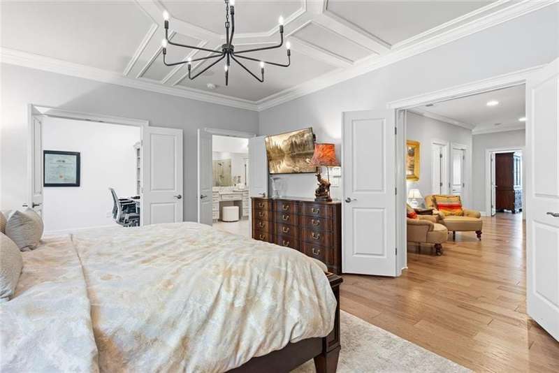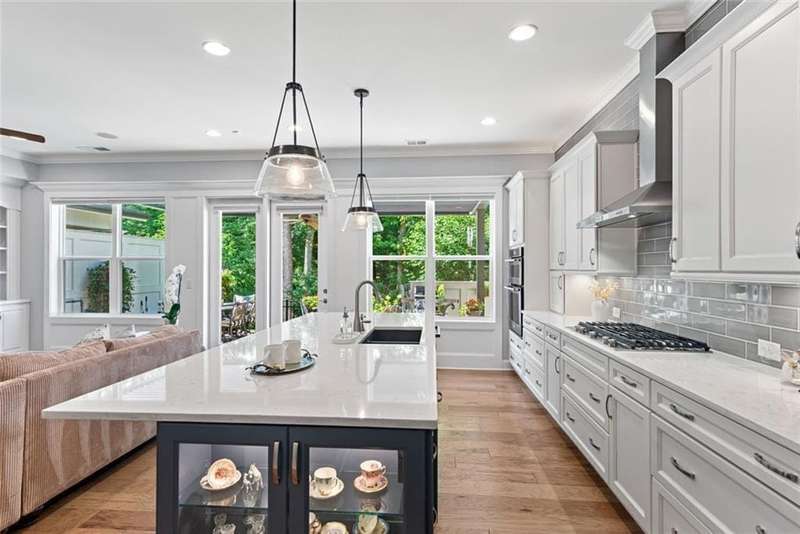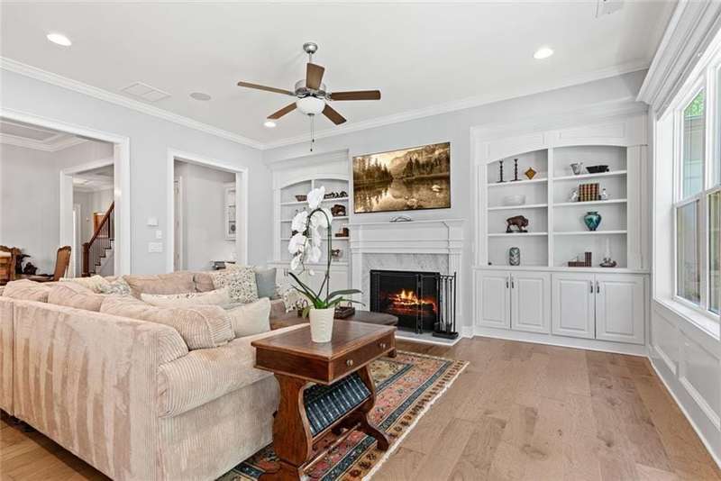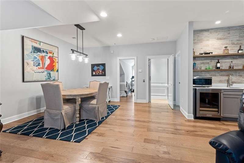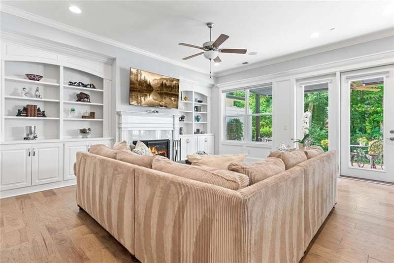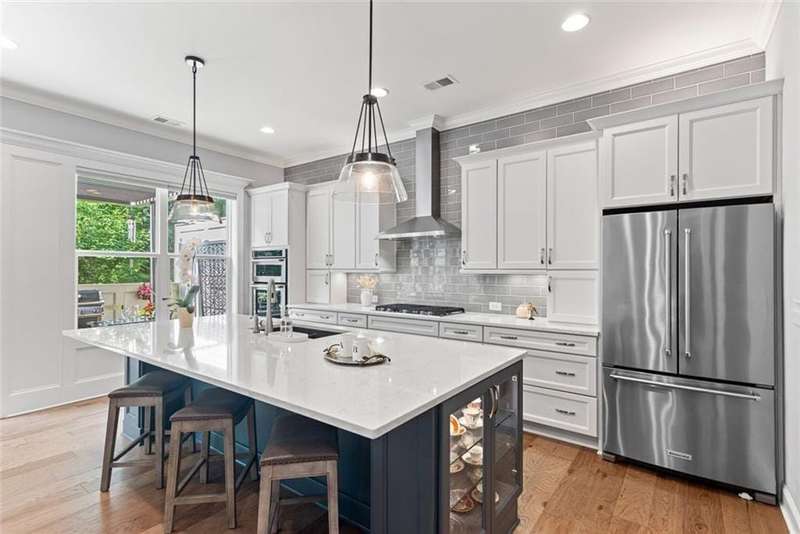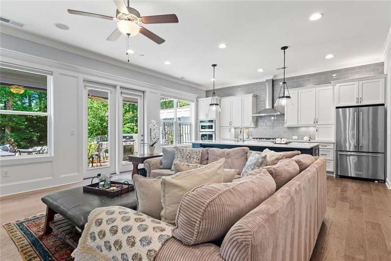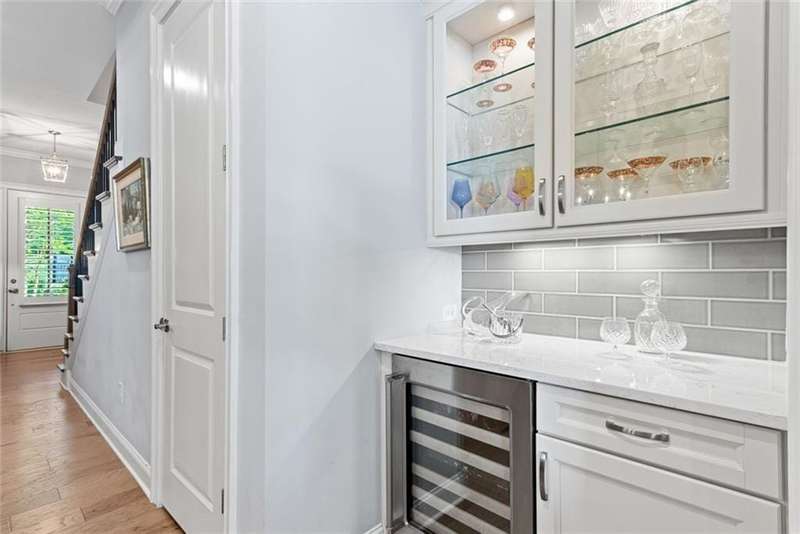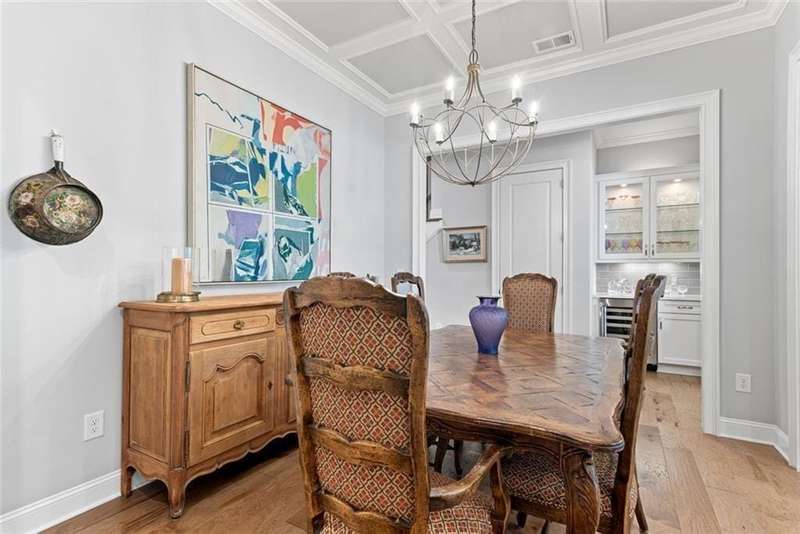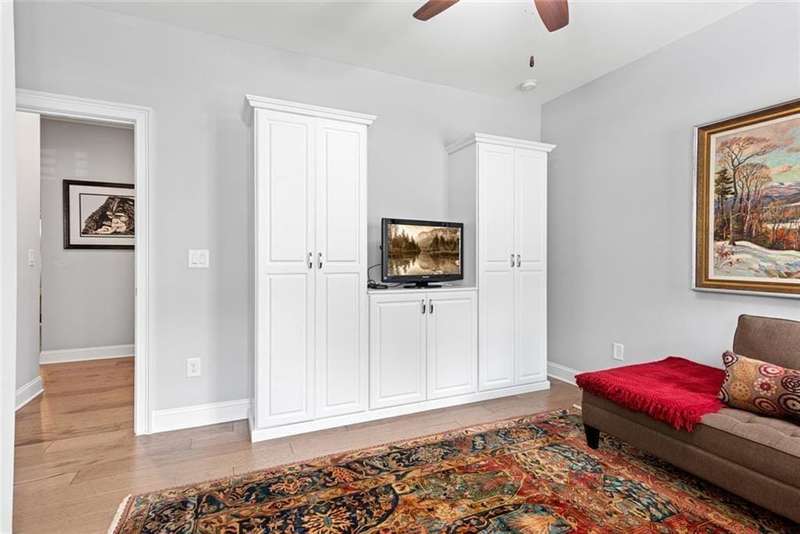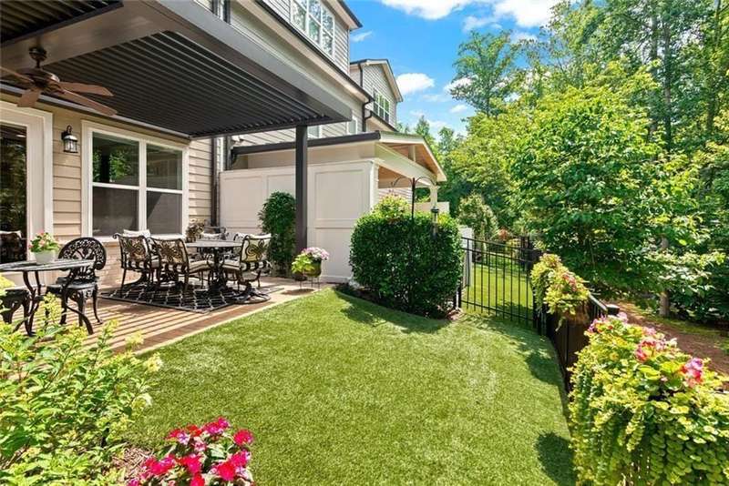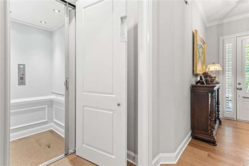 Beautiful Home with ELEVATOR, one of only a select few units in this highly sought-after building that backs directly to serene Green Space! Designed with every available upgrade at the time of construction, this home features a private elevator (valued at $60,000) and an Auto Sensing Arcadia Pergola (valued at $40,000). Additional premium touches include a full camera security system, integrated surround sound, and beautiful hardwood floors throughout. Thoughtfully appointed with stepless front and rear entries, private front entry area and four guest parking spaces for guests. Gorgeous Roswell townhome with Cobb taxes in gated Havenridge Community and only a short drive from downtown Roswell!! This better than new construction unit includes every option available and more including an ELEVATOR! The spacious open floor plan with 10' ceilings and hardwood floors throughout welcomes you into the main level. Cooking and entertaining are a joy in this Chef's kitchen complete with quartz countertops, a 5-burner gas cooktop, and an oversized island, perfect for entertaining a multitude of guests. Ample storage throughout including a walk-in pantry and stunning custom cabinetry. An office nook and butler's pantry complete the kitchen area. The family room, open to the kitchen is flanked by a gorgeous gas fireplace and built-in wall cabinetry which leads to the oversized covered patio complete with an auto-sensing Acadia Pergola and private wooded views of the neighborhood greenspace and babbling creek. The open dining room is complete with a coffered ceiling and Pottery Barn chandelier. Additional features include a custom bar area complete with a wine cooler. The second floor encompasses an extra wide open landing leading to the fireside primary suite and two additional secondary bedroom suites. The laundry room has direct access to the master suite as well as hall access. The third level boasts a private living area with custom built ins, wet bar with built in drink cooler, and room for a full-sized pool table or media center. A fourth bedroom suite completes the fourth level making it a perfect in-law/teen suite. This amazing townhome includes a private fenced backyard, totally turfed, backing up to a nature setting of woods and wildlife. The two-car garage includes an electric car station and custom built-ins and overhead storage. Premier Building in Havenridge backing up to greenspace.