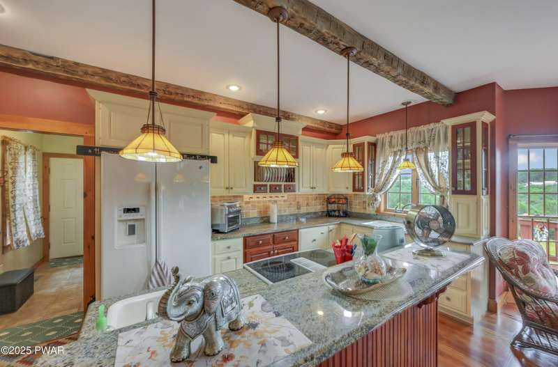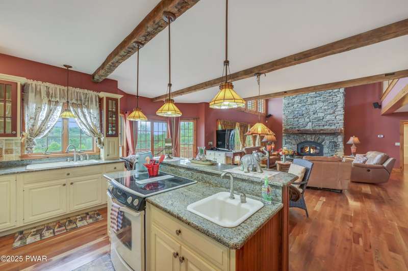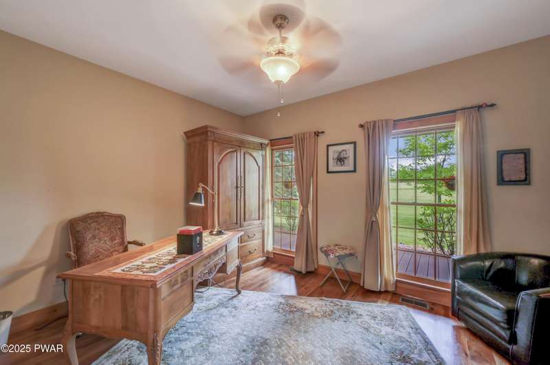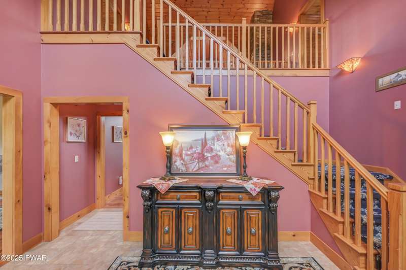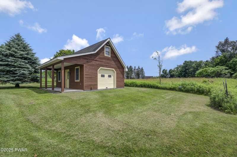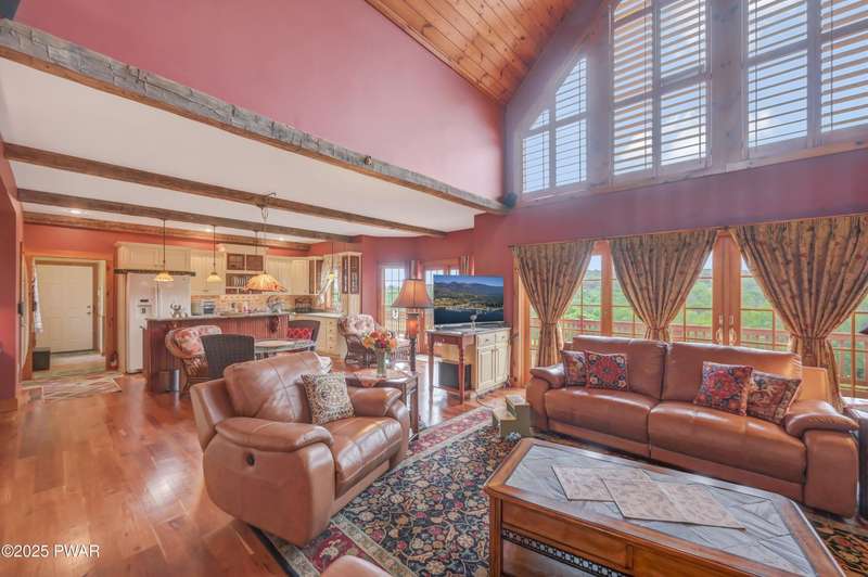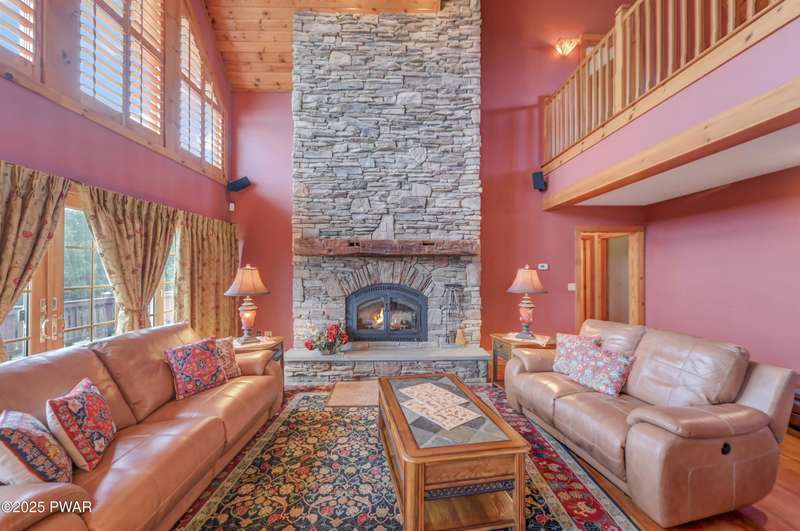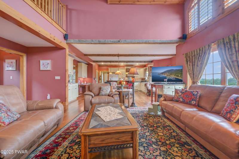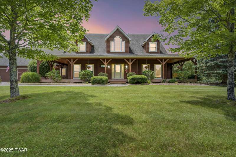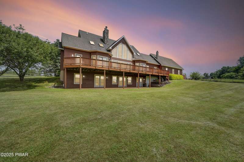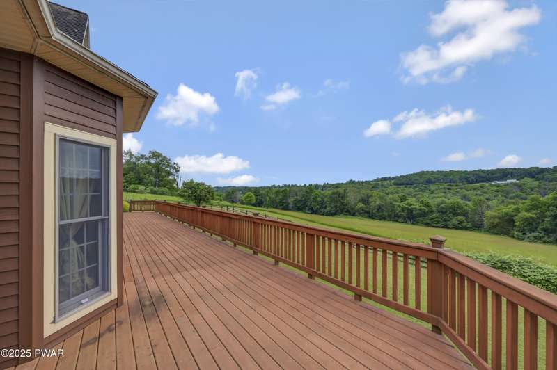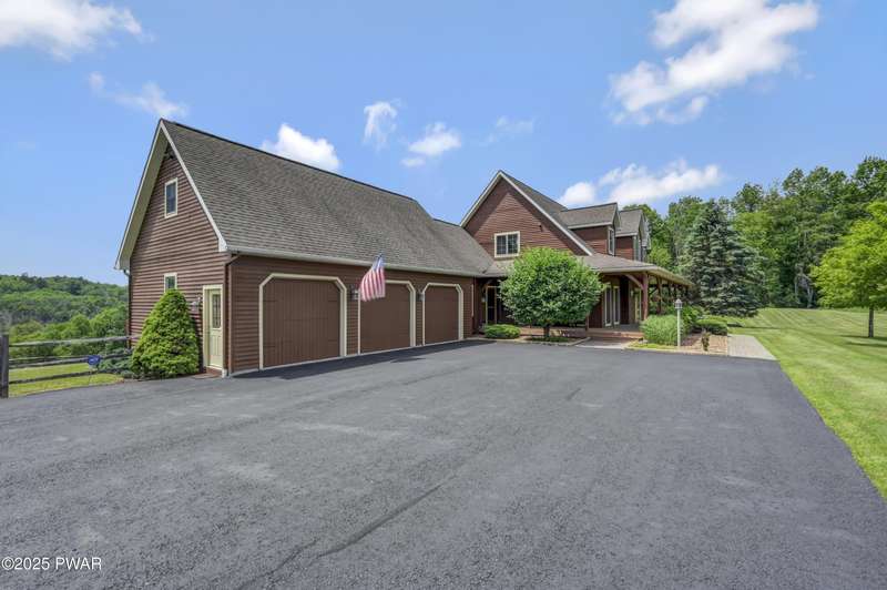 This absolutely gorgeous 5-bedroom, 5.5-bath estate at 191 Kratz Road sits on 19 incredible acres, with knock-out views, access to a private pond, and no community restrictions. Inside, you'll walk into a grand entrance and find a wide-open floor plan with hardwood, tile, and carpeted floors throughout the house, vaulted ceilings, and massive windows that flood the space with natural light. The living room centers around a floor-to-ceiling stone wood-burning fireplace with exposed wood beams. The kitchen is spacious and flows into a formal dining room and giant entertaining decks with stunning Pocono Mountain views of Wayne County. Three of the bedrooms are full suites, including a main-level master with a soaking tub and dual walk-in closets. Downstairs has a huge family room, perfect for guests or extra hangout space, and tons of unfinished space for storage or future expansions of game rooms, wet bars, home theaters, or fitness rooms. Outside features include a huge open deck, another large covered porch, a 3-car attached insulated garage, a detached utility garage, a whole-house generator, a paved driveway, and beautiful landscaping. Plenty of space, privacy, and flexibility. No HOA restrictions, and plenty of room to live the luxury lifestyle you deserve!