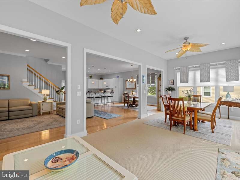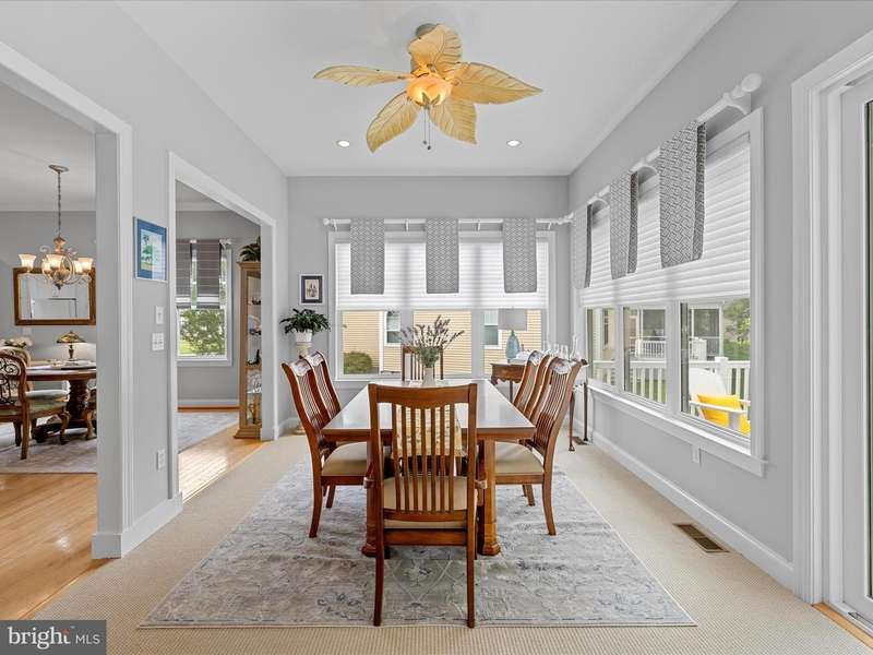 Welcome to this extraordinary Dorsey model home, the largest version ever offered, located in the highly sought-after waterfront community of The Refuge at Dirickson Creek. Thoughtfully designed for comfort and coastal elegance, this home features 4 spacious bedrooms, 3.5 baths, and a refined layout ideal for both everyday living and entertaining. The inviting first floor showcases an open-concept design anchored by a gourmet kitchen with granite countertops and a generous island perfect for gatherings. The kitchen flows seamlessly into the dining area, a grand family room, and a bright sunroom that opens to an expansive deck overlooking a beautifully landscaped and fully fenced yard. Every space feels warm and connected, creating a true sense of home. The first-floor primary suite is a private retreat, complete with a walk-in closet, a spa-inspired bath with a soaking tub, walk-in shower, and separate water closet, as well as an adjoining sitting room that can easily serve as a fifth bedroom or office. Upstairs, a spacious loft opens to a second-story deck, offering panoramic views of the community and treetops. One wing features a private guest suite with direct deck access, while the opposite side includes two additional bedrooms sharing a well-appointed full bath. This particular Dorsey model stands apart not only for its expanded design-with two dormers, an extended first floor that allows for a kitchen pantry, and a dedicated mechanical closet-but also for the care and quality upgrades that have been added throughout. A new roof installed just two years ago, new windows within the last four years, and appliances and hot water heater upgraded in recent years ensure modern reliability. Gutter Helmet and Gutter Guard systems add peace of mind, while an elevated foundation, extra-wide concrete driveway, and HOA-approved fencing enhance both curb appeal and functionality. Inside, thoughtful craftsmanship continues with custom wood-trimmed window sills and passageways, Hunter Douglas Silhouette and plantation shutters, and hurricane shutters on the upstairs sliders. Even the attic has been improved, with finished flooring for added storage. Perfectly positioned across from Sunset Park and open community green space, this premium wooded lot-originally sold by the developer as Lot 268-carried one of the community's most desirable locations. Just two miles from Fenwick Island and Ocean City beaches, The Refuge is a prestigious, award-winning waterfront community offering residents an enviable coastal lifestyle with breathtaking views of Dirickson Creek, a resort-style pool, clubhouse, fitness center, tennis and basketball courts, walking paths, community ponds, and a fishing pier. Experience the perfect blend of sophistication, comfort, and coastal charm in this one-of-a-kind expanded Dorsey model-a home that truly stands out as one of The Refuge's premier properties.