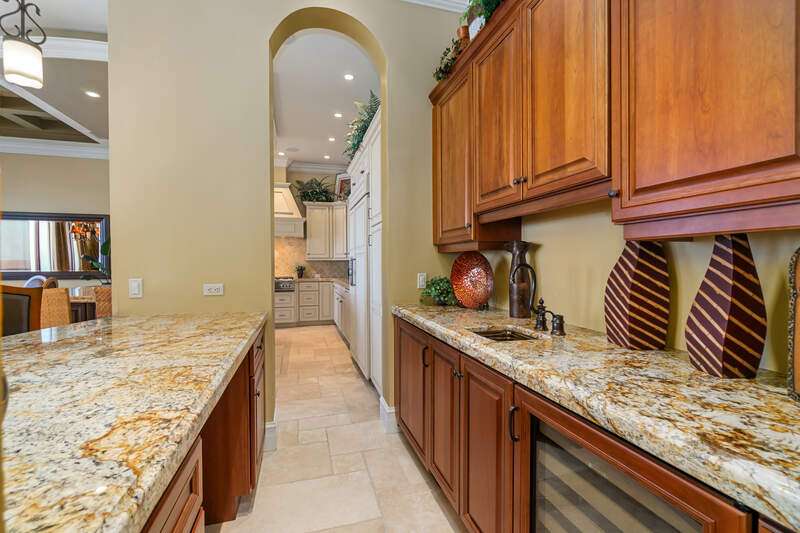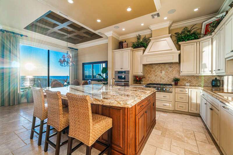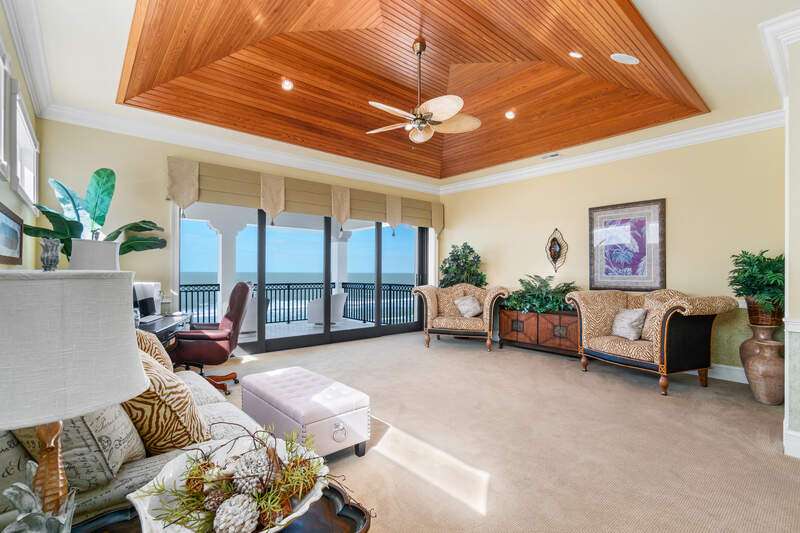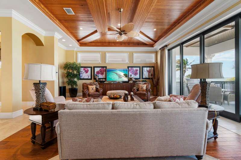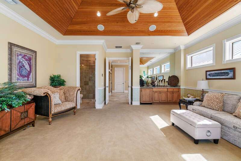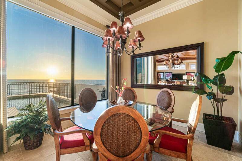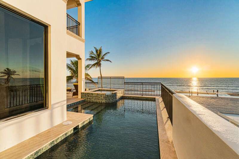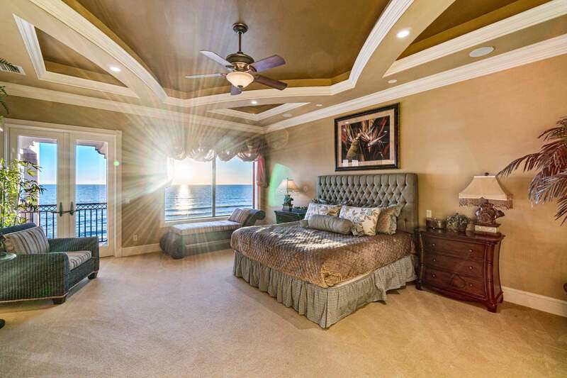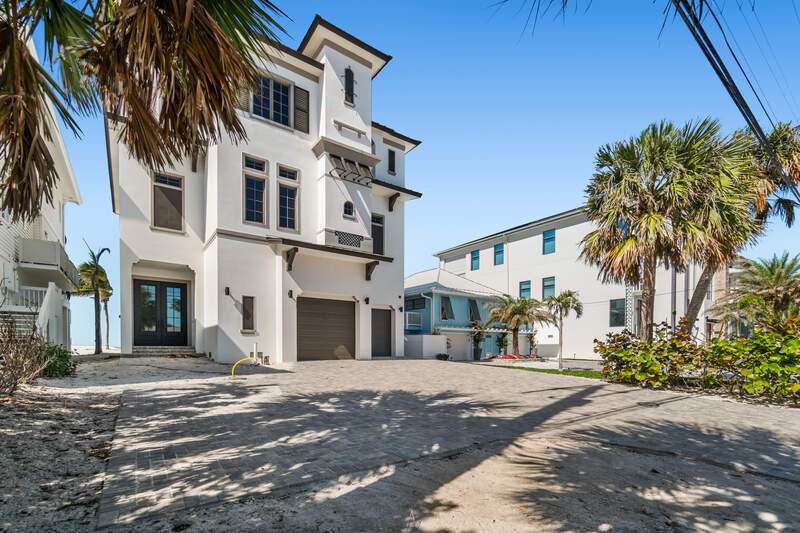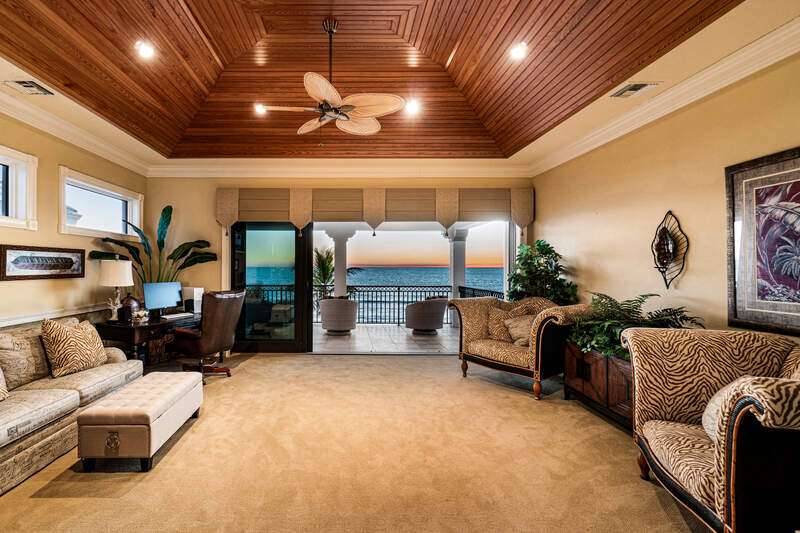 Stunning & newer-built beachfront home with breathtaking views of the Gulf, ideally situated on the highly coveted Bonita Beach. With unobstructed views of the turquoise waters and pristine white sands, this home is a true coastal gem. Built like a fortress, this home features all concrete-block construction and brand-new hurricane impact windows and sliders. Perfect for entertaining, the spacious open floor plan includes 4 bedrooms, 5.5 bathrooms, an expansive upstairs bonus room, and a versatile ground-floor flex space. Step outside to a private backyard oasis, complete with a RARE elevated pool and spa, a summer kitchen, and panoramic Gulf views. Inside, you'll find luxurious finishes throughout, including custom wood-paneled coffered ceilings and a seamless blend of hardwood and travertine tile flooring. The chef's kitchen boasts granite countertops, an oversized island, light colored custom cabinetry, an eat-in area, and a breakfast bar perfect for casual dining. Adjacent to the kitchen is a custom bar area with a built-in wine cooler, wet bar, and additional bar seating-ideal for entertaining guests. The expansive primary suite offers a serene retreat with sweeping Gulf views, a private balcony to enjoy spectacular sunsets, and a spa-like bathroom with dual vanities, a frameless glass shower, and a separate soaking tub. The upper-floor bonus room is a versatile space, complete with an ensuite bathroom, wet bar with beverage cooler, and an open-air balcony-perfect for a media room, office, or additional living area. Additional features of this home include a private elevator and a smart lighting system. Close to several fantastic restaurants and only a 10-minute drive to Mercato and the Promenade, with Waterside Shops, Coconut Point, Naples 5th Ave, and the International Airport nearby. Live the ultimate coastal lifestyle with sweeping views of the Gulf-this is luxury living at its finest!
