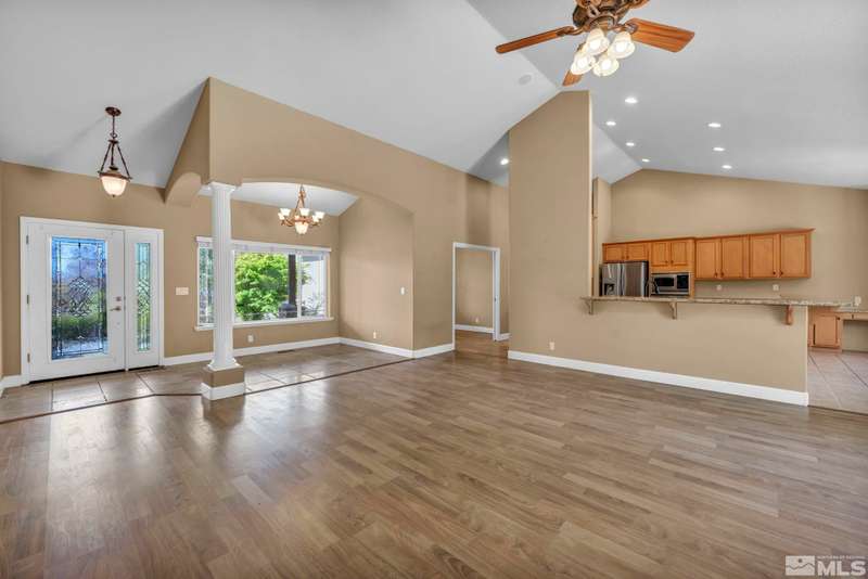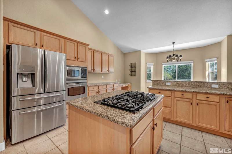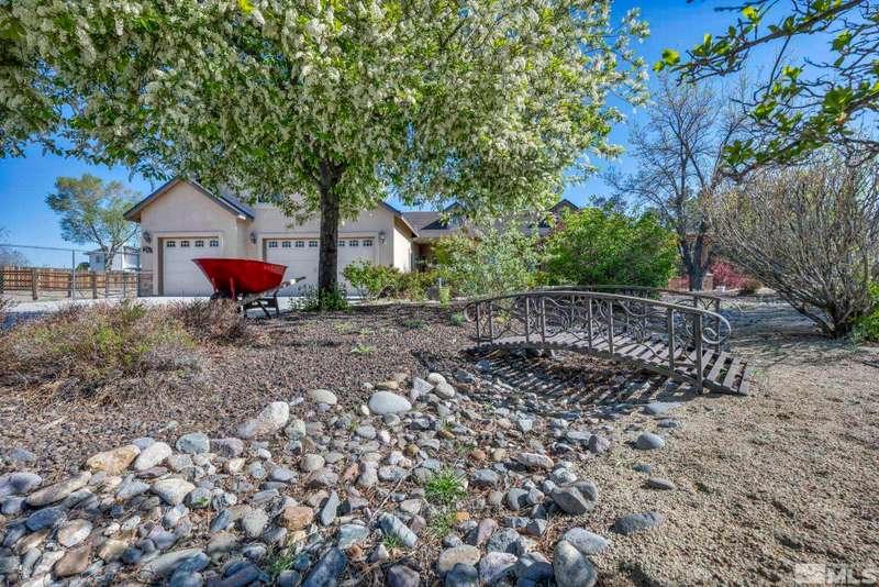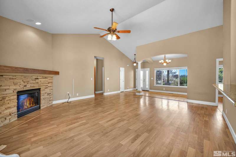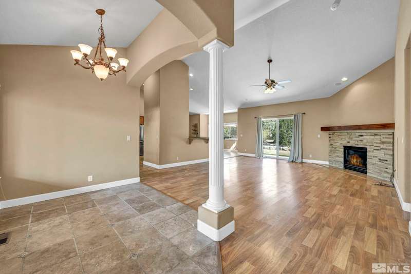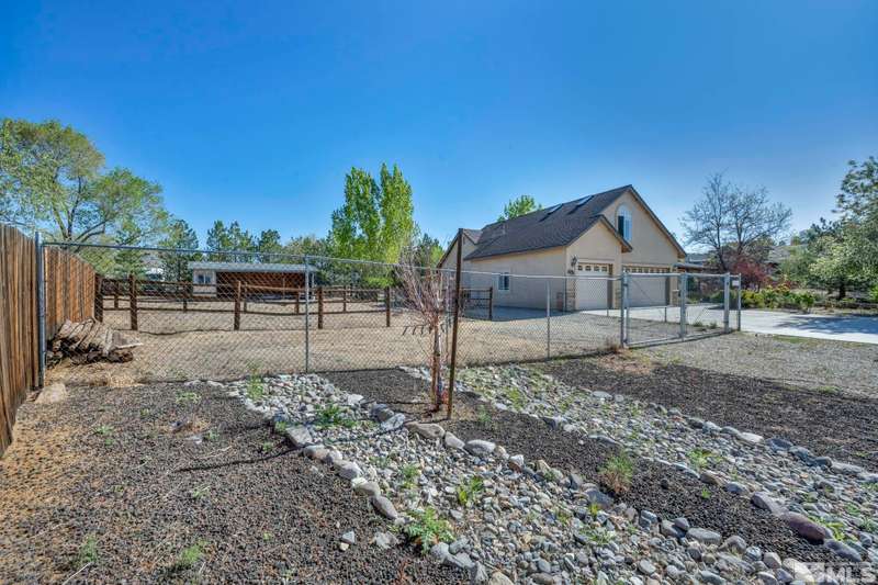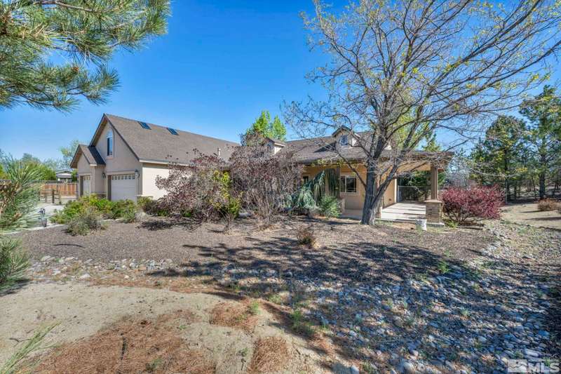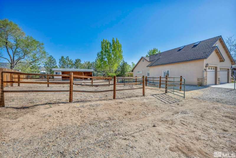 Welcome to your dream horse property nestled in a peaceful cul-de-sac in scenic Minden—where privacy, breathtaking views, and country living come together with modern comforts. This beautiful estate offers 3 spacious bedrooms, an office, and a large bonus room above the garage—perfect for guests, hobbies, or additional living space. Inside, enjoy vaulted ceilings, durable laminate flooring, and a cozy gas log fireplace that anchors the open-concept great room., The chef’s kitchen is a true highlight, featuring maple cabinets, granite slab countertops, stainless steel appliances, and a breakfast bar ideal for gatherings. Step outside to discover a true equestrian haven with corrals, a loafing shed, tack room, and a 220V RV plug. A newer Generac generator ensures peace of mind, while 80 mature pine trees and fruit-bearing apple and cherry trees—on drip irrigation—enhance the serene, park-like setting. The main suite offers a retreat with its own gas fireplace and generous his-and-her closets. All of this with no HOA, only 30 minutes from the shores of Lake Tahoe and 50 minutes to Reno-Tahoe International Airport. This one-of-a-kind property blends the best of rural charm and modern convenience—don’t miss it!