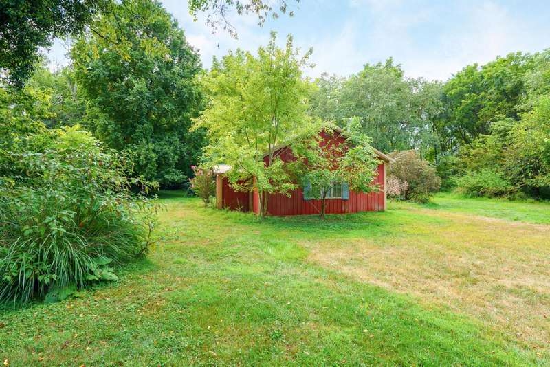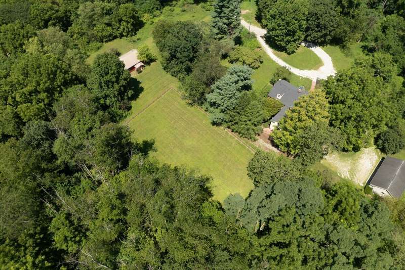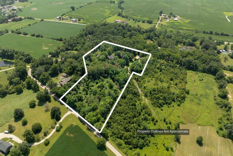 Rare opportunity to live in this timeless country retreat on 8.7 acres. Built in 1827, this historic brick Virginia style farmhouse blends classic craftsmanship with carefully designed modern upgrades. Fully renovated kitchen with warm wood cabinetry, stainless steel appliances, custom dog nooks and a water station. Additional updates include two renovated first-floor baths, custom lighting throughout, a new roof, a fenced yard, and a convenient dog wash station. Walkout lower level provides great family room/media/work spaces- incredibly charming with whitewashed brick floor. The grounds are equally impressive, with stone patios, wooded walking paths, creek, and outdoor entertaining spaces. A 3-car garage and pole barn add versatility. This one-of-a-kind property combines privacy, natural beauty, and historic charm ??? all in a truly special setting. See A2A remarks.