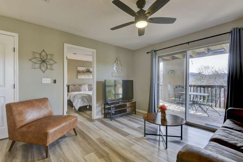WALK TO THE LAKE FROM YOUR BACK DOOR! Watch the video! Great Location about 5 MINUTES FROM SILVER DOLLAR CITY or the MARINA at Indian Point. Please see the LIST OF UPGRADES made in 2024 included in the photos among which is a new AC unit, new furniture, dishes, fixtures and more!.. Oh yes! 3 new smart TVs! Relax on your covered back porch near the lake and woods and cook out on the new electric grill. This is an income producing property, but you are allowed to live there if you like. About fifteen minutes to the 76 Strip in Branson! This is a highly sought after area for rentals, and this condo is truly turnkey with no work for you to do!