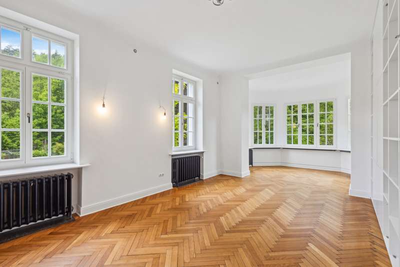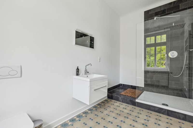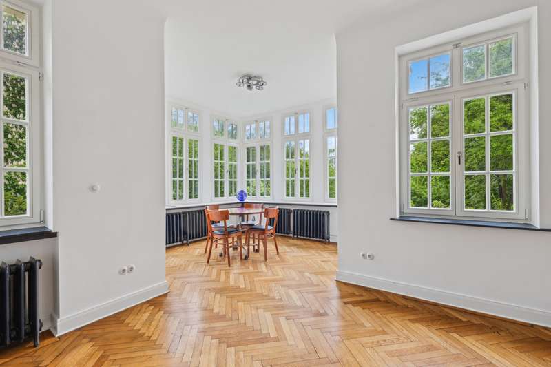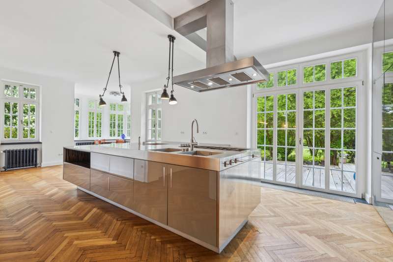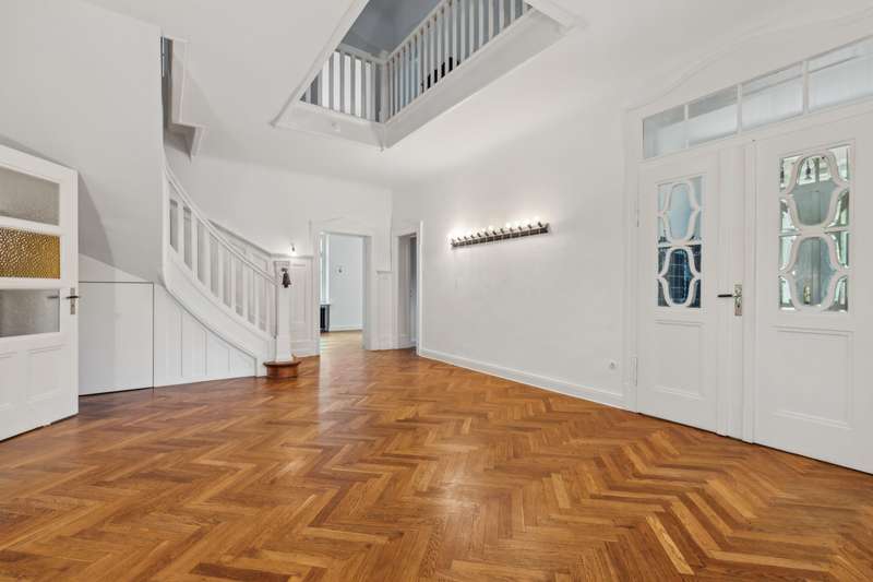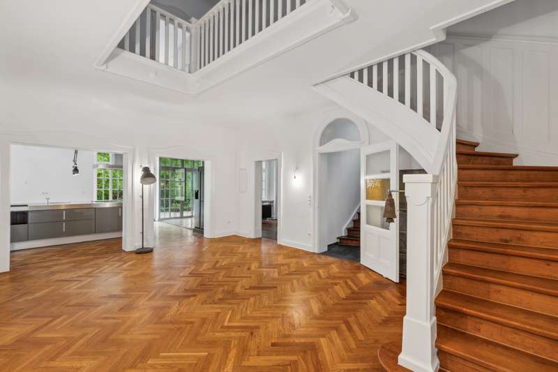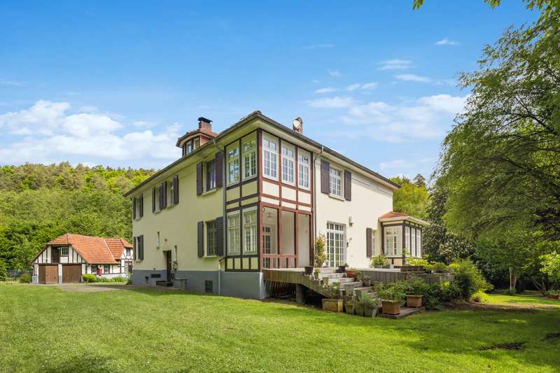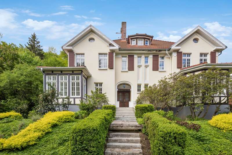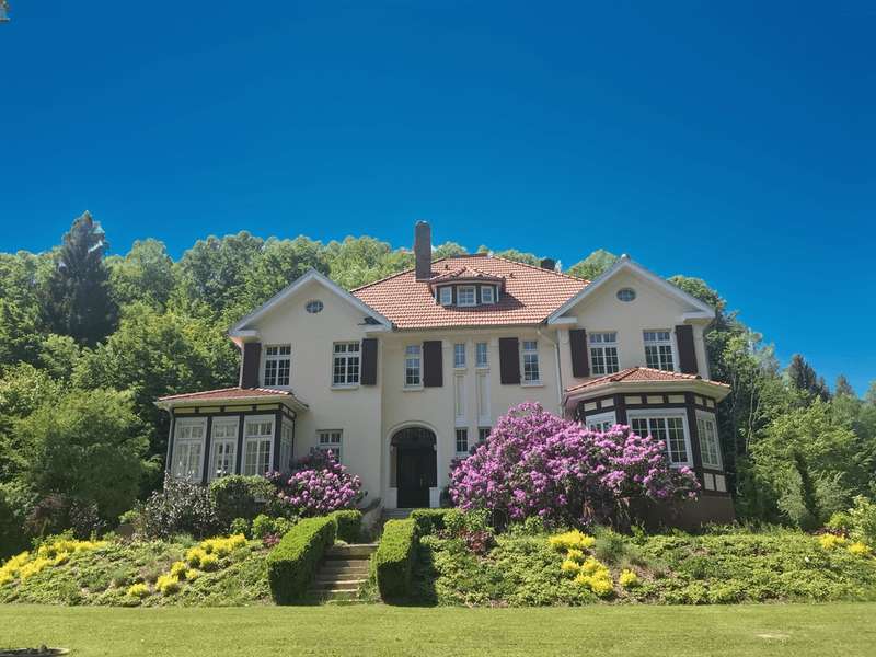 This exclusive listed villa from 1911 impresses with a generous living space of approx. 450 m² and a spacious plot of approx. 13,200 m². The villa has been completely renovated since 2009 and was last equipped with a solar system and four storage batteries in 2024. There are a total of 11 rooms, including 7 spacious bedrooms and 5 luxuriously appointed bathrooms. High-quality central heating provides pleasant warmth throughout the villa and the window replacement in 2023 ensures excellent energy efficiency. In the entrance area, a beautiful fireplace provides a "warm welcome" as you enter your dream home. High-quality materials have been used in all areas of the property, ensuring an exclusive finish of the highest standard. The main house impresses with its high ceilings, large window fronts and the warm character of the wooden floors consisting of parquet and floorboards. The generous proportions symbolize a well thought-out and open room concept. The villa is ideal for a large family or as a prestigious residence for discerning buyers. It could also be occupied by two parties, as two staircases connect the individual floors and the living spaces could therefore be divided. The central point of the house is the kitchen and dining area. Here you can organize communal cooking evenings on approx. 100 m² and enjoy fresh meals in the adjoining dining area. The open kitchen with kitchen island and stainless steel surfaces has direct access to the sheltered terrace. Further bedrooms and children's rooms are located on the upper floor. Adjoining bathrooms and dressing rooms provide the necessary comfort. A staircase connects the upper floor with the converted attic. A well-considered room division has created further guest rooms with a guest bathroom, as well as storage or work rooms and a large home cinema. Further storage and utility rooms can be found in the basement, spread over the entire floor area of the house. Thanks to the extensive energy modernization measures and the installation of the solar system, the villa is not only environmentally friendly, but also economically efficient in terms of maintenance costs. The park-like plot impresses with its very well-kept garden area and a wooded section. In addition to the main villa, the property offers a coach house, which is most recently used as a double garage. A greenhouse with adjoining vegetable garden makes every gardener's heart beat faster. Naturally, the water supply has also been considered here. Not only the garden, but also the possibility of keeping chickens are a further nature-oriented plus point of this unique property and ensure a remarkable quality of life. Interested parties who value a luxurious property that combines history with modern living comfort are cordially invited to get to know the advantages of this villa during a personal viewing. The combination of historical charm and state-of-the-art facilities makes this property a dream home for discerning buyers. Arrange a viewing appointment and be impressed by the many details and the generous room layout.