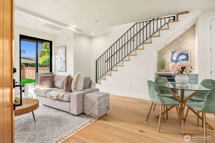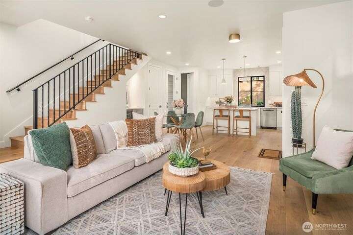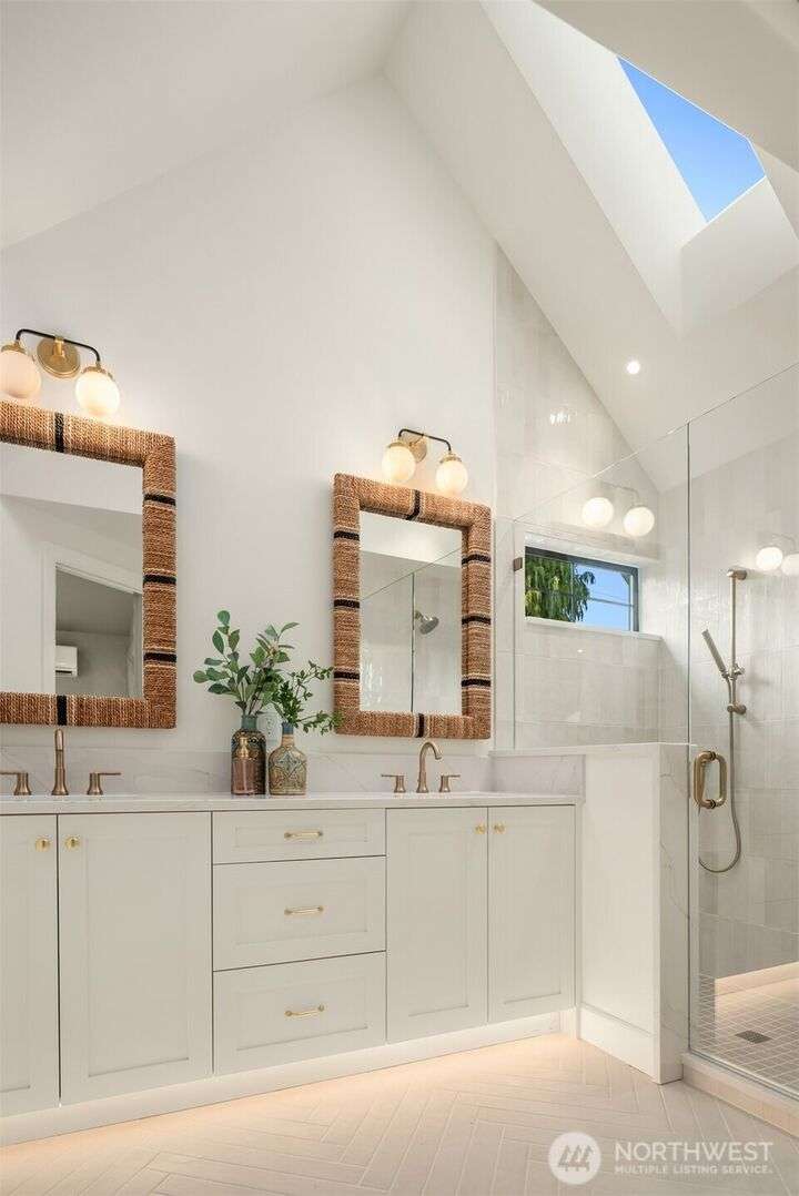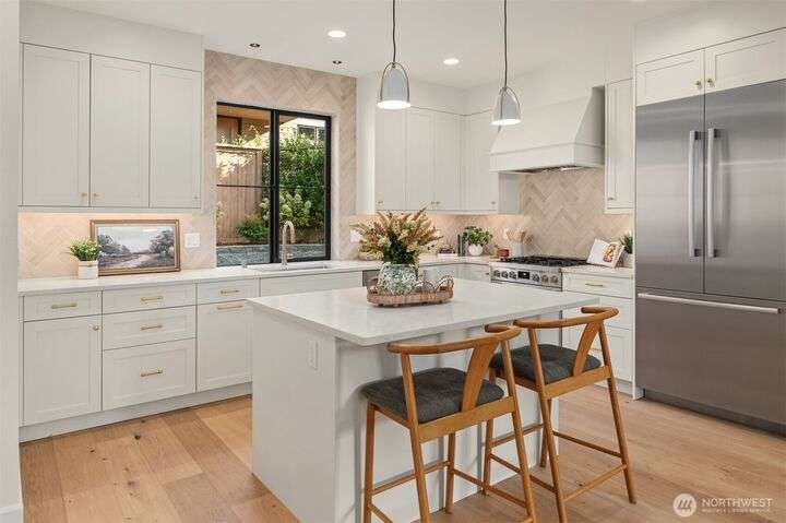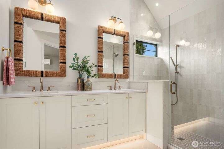 NEW MUST-SEE Cottage in West of Market! Located just a few steps from Juanita Bay Park & Boardwalk, this 2bd/2.5ba charmer by Granger & Co offers uncompromising quality & luxurious comfort with meticulously curated design. Bright & airy open concept great room boasts butlers bar and sliding doors that open to the patio & fully fenced yard. Gorgeous Chef's kitchen features quartz counters, Bedrosian tile, Belmont cabinets, & top-of-the-line appliances. Retreat upstairs to 2 bdrms w ensuite baths - and convenient laundry area. Spacious primary boasts private balcony, walk-in closet & sumptuous bathroom bathed in natural light thru vaulted ceilings & skylights with heated floors, double sinks & stunning fully-tiled shower. EC charging station.