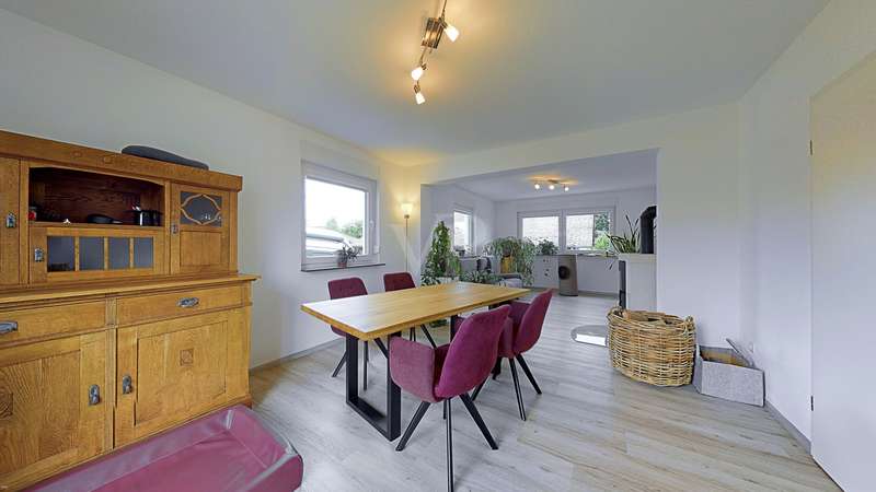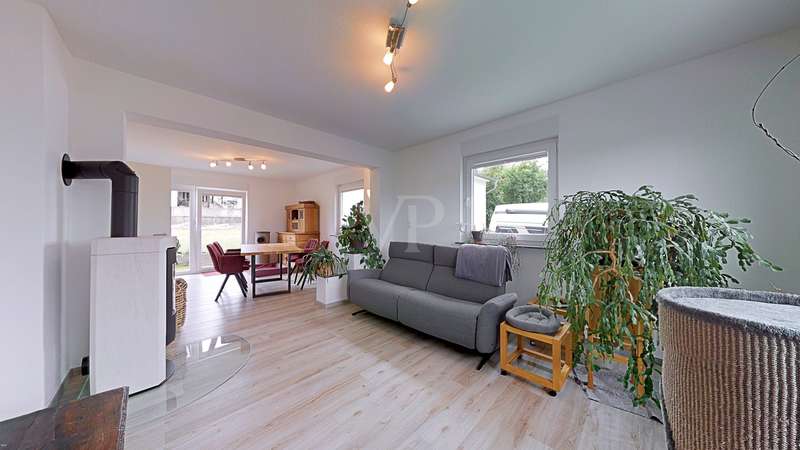 With a living space of approx. 110 m² and a generous plot of approx. 1000 m², this renovated detached house built in 1968 offers the ideal opportunity for discerning buyers. Originally built to comfortably accommodate a family, the house was extensively modernized in 2023 and is now in excellent condition. The property has a total of four rooms, including two spacious bedrooms that offer plenty of space for relaxation and privacy. The bathroom has a modern design and impresses with high-quality materials and a pleasant atmosphere. The heart of the house is the spacious living room with a fireplace, which provides cozy warmth in the colder months of the year. The spacious window front floods the room with plenty of natural light and offers direct access to the garden. The fitted kitchen is another highlight and leaves nothing to be desired. It is equipped with modern appliances and meets high standards of functionality and design. Special mention should be made of the fact that the house is equipped with underfloor heating, which not only provides additional comfort in winter, but also effectively supports the central heating. The modernization carried out in 2023 included an extensive renewal of the electrics as well as the water and sewage systems. New windows were also installed to ensure both energy efficiency and noise protection. The attic ceiling was insulated to achieve additional energy savings. Outside, the property boasts a large garden in which various fruit trees ensure a rich harvest. A separate meadow offers a variety of uses. In addition, the property has a brick garden shed, which is currently used to store wood, and a garage with a separate room and attic, which offer further storage space. There is ample parking space for vehicles, and the quiet location in a family-friendly environment allows future residents to enjoy the benefits of nature in the immediate vicinity. This property combines contemporary living comfort with traditional charm and offers an excellent opportunity for anyone looking for a high-quality renovated home. Thanks to the modernization work that has already been completed, the house is ready for immediate occupancy and at the same time opens up space for individual design ideas. With its upmarket fittings and structural quality, this property is ideal for couples and small families who appreciate a home with plenty of space inside and out. A viewing is well worthwhile to discover the many possibilities and the special character of this detached house at your leisure. Note: The energy certificate was issued before the renovation and does not correspond to the current status!