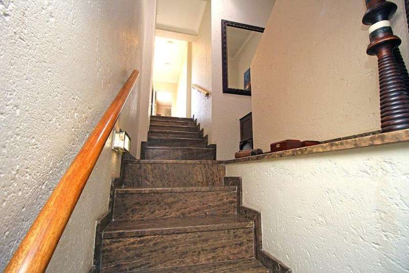 5 BEDROOM FAMILY HOME IN DOWERGLADES PLUS COTTAGE Step into a lifestyle of comfort, space, and security in this remarkable residence, perfectly positioned in the sought-after gated community of Dowerglades (Marais Steyn Park). From the moment you enter the welcoming hall, the home’s thoughtful design and quality finishes set the tone for what’s to come Living & Entertaining Spaces: The open-plan kitchen and dining area form the heart of the home, beautifully tiled and filled with natural light from four skylights. The kitchen features a large Elba electric oven with electric/gas stove and extractor fan, ample cupboard space, and sleek granite countertops. Wooden doors lead to a spacious family lounge fitted with cabinetry, tiled floors, an air conditioner, and aluminum stacking doors opening to an inviting patio with views of the pool and garden. A TV lounge, complete with a striking fitted mirror and sliding doors to the patio, offers a second relaxing space. The patio with gazebo, built in coal braai and gas braai, provides an ideal year-round entertaining area. Bedrooms & Bathrooms Downstairs: Two generously sized bedrooms include built-in cupboards—one with air conditioning and the other with a ceiling fan—served by a full guest bathroom. A large walk-in cupboard under the staircase adds extra storage. Upstairs: The granite staircase and large skylight creates lots of light. The spacious master suite features a walk-in cupboard, laminated flooring, luxurious en-suite full bathroom, air conditioner, and ceiling fan. The third upstairs bedroom also offers a walk-in closet, air conditioning, and ceiling fan. A large fitted study opens onto a private balcony with beautiful views. Outdoor Oasis: The garden boasts a refreshing rock swimming pool, perfect for hot summer days, along with a small, low maintenance garden area. Additional features include a spacious Zozo hut, staff bathroom, a 1,000-litre JoJo tank, and solar garden light. Private Cottage: With its own separate entrance and koi pond, the cottage offers an open-plan lounge and kitchenette, a comfortable bedroom, and an en-suite bathroom—ideal for guests, extended family, or rental income. The current Owner has rented out the cottage as an Air B & B and has received an average rental of R15 000.00 per month Extras & Security: Blinds throughout remain as fixtures. Two geysers. A pre-paid electricity meter, satellite dish, TV and M-Net aerials, 19kg gas bottle for the stove, and double automated garages with direct access to the home add convenience. Located in a boomed area with electric fencing on three walls, alarm system, panic buttons, and remote-control security devices. Boom levy: R350.00 a month.