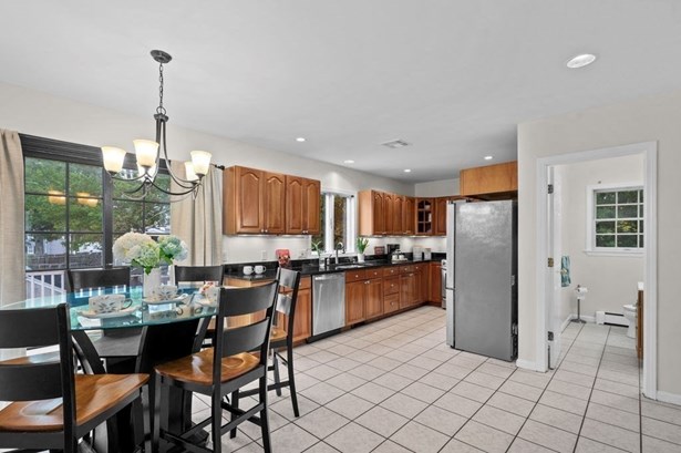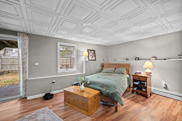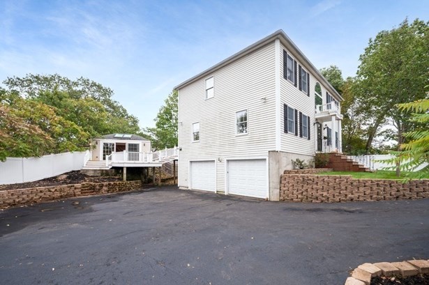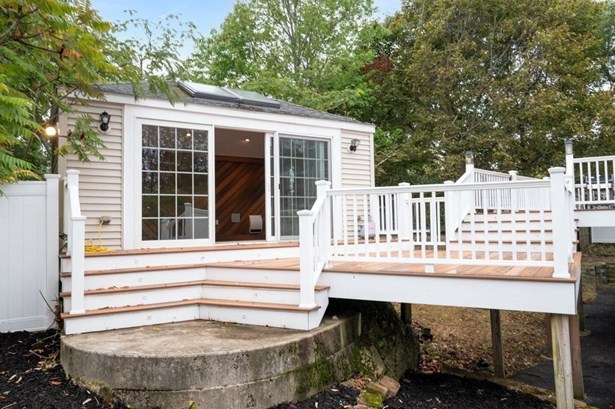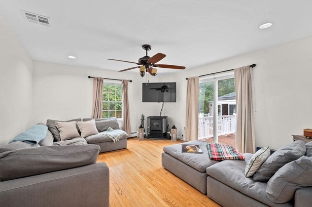 Welcome home to this charming, meticulously maintained home at end of quiet cul-de-sac. This oasis offers tranquil, private living close to town, beaches, highways. Refreshed interior paint w crisp, clean feel is ready for you to move in. French doors open to 1st flr office, offering separate workspace. Comfortable living area w woodstove adds rustic, cozy warmth & slider access to deck. Timeless kitchen w eat-in option & sliders to deck. Retreat to primary bdrm featuring private en suite w luxurious spa tub & large walk-in closet. Finished basement features full kitchen, bath, & exterior access. Separate heated building w skylights presents blank slate; originally designed for hot tub/sauna, perfect for home office, gym, playroom, hobby space. Attached two-car garage provides convenient parking, additional storage. Recently resealed driveway, prof lansdscaping & fenced yard. Gas heat, central air. Don’t miss opportunity to own this perfect blend of comfort, convenience, & versatility!