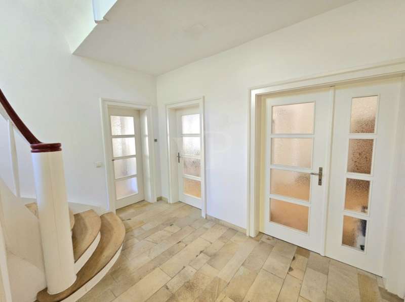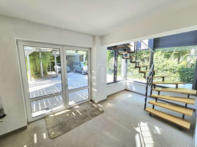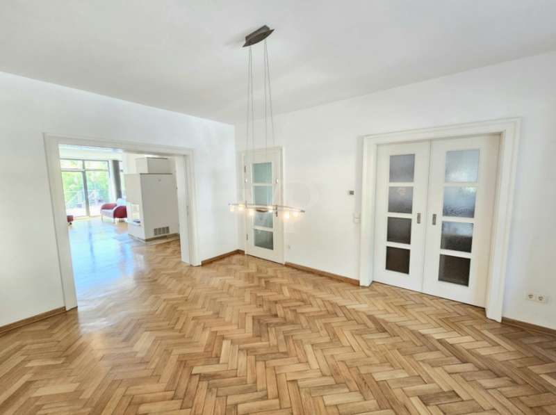 This renovated semi-detached house in a prime location on Parkinsel in Ludwigshafen offers a home for discerning residents with a generous living space of approx. 326 m² and a plot of approx. 392 m². Built in 1937 and last extensively renovated in 2004, the house is in a well-kept condition and combines historical charm with modern amenities. The space is spread over four levels, all of which are cleverly interconnected. Various cellar rooms and the building services are located in the basement. This floor also has a large, bright living area at ground level facing the south-facing garden, which can be used as a workspace or home office, for example. A separate exit to the outside area leads to the covered terrace and the two carports. In addition, a second staircase connects the basement with the elegant first floor. This connection is planned in such a way that an elevator can be installed through structural adjustments. The first floor impresses with a spacious, light-flooded living room, from which there is direct access to the south-facing terrace. A separate dining room and a cozy fireplace area round off this comfortable living space. The floor on the first floor is covered with historic solid wood parquet, which gives the room added value. The stylish sliding doors to the kitchen, dining room and living room allow the areas to be separated if required. On the upper floor there is a large, extensively equipped daylight bathroom with a shower, bathtub and sauna. The master bedroom is connected to the walk-in dressing room and the bathroom (en-suite bathroom). Furthermore, both bedrooms on this level have various high-quality built-in wardrobes and access to the balcony. The top floor houses two further rooms, which are ideal as bedrooms or guest rooms, as well as another bathroom and a room with prepared kitchen connections. There is also a small balcony here, which invites you to linger. The floors from the first floor to the top floor are connected by a charming staircase with original style elements, which gives the house its special character. The outdoor area not only offers two carports, but also a clearly laid out and easy-care garden area. In the cold season, the as-new gas central heating and the fireplace as well as the high-quality furnishings of the property ensure comfort and a high standard of living. This semi-detached house impresses with a well thought-out room layout, high-quality materials and a central location with good connections to the Rhine-Neckar metropolitan region. This property combines living comfort with elegant details and is the ideal home for anyone who appreciates the charm of a historic building with the living quality of a renovated property.