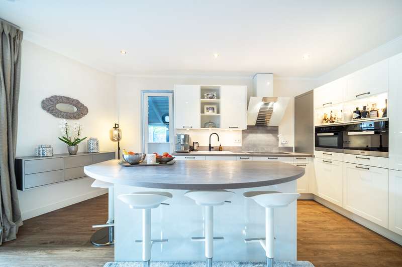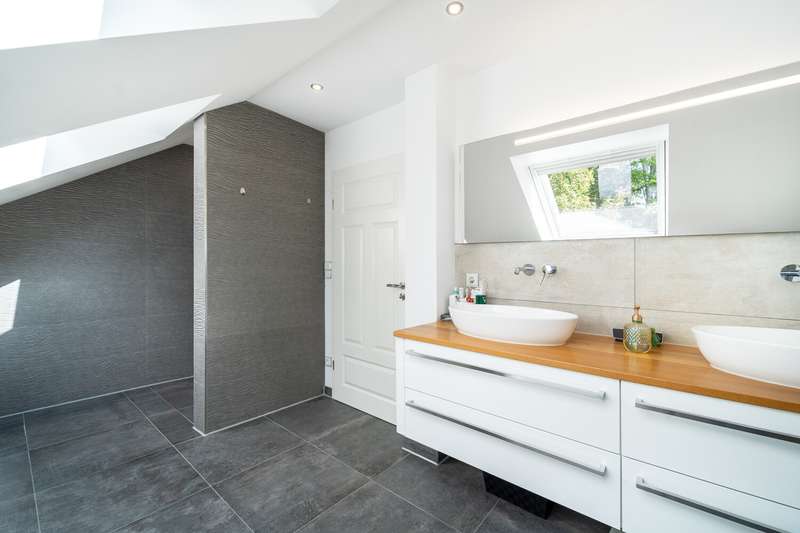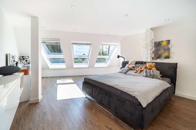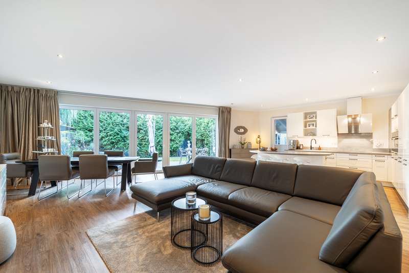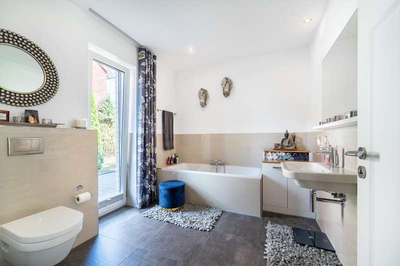 This property is presented to you by: Philipp Schremmer & Jan-Phillip Adam Phone: 05201 - 15 88 02 0 Fantastic semi-detached house in KfW 40 standard | popular residential area of Versmold This well-kept semi-detached house was built in 2017 according to KfW 40 requirements in solid construction and offers sufficient space with around 151.05 m² of living space - plus 8.75 m² of terrace space. The plot size is approx. 361.00 m² and makes the hearts of garden lovers beat faster. Particularly worth mentioning is the idyllic stream that flows along the boundary of the property. A domestic well system is available for watering the garden. The completely barrier-free first floor impresses with a well thought-out room concept on approx. 93.72 m². In addition to the spacious bedroom with adjoining modern bathroom, you will find a generous living/dining room with an open and contemporary kitchen and direct access to the terrace. You can conveniently store your washing machine and tumble dryer in the practical utility room. This floor is rounded off with a further room, which is currently used as a checkroom and storage room. Your own private floor awaits you on the top floor. Here you will find a bedroom, which is particularly bright and spacious. The shower room has a timeless design. This floor is rounded off with a custom-made dressing room. All wardrobes and storage options have been adapted to the sloping ceilings. There is space for your car in the house's own carport. Attached to the rear and ideally concealed, there is a storage room for garbage cans and garden tools. The two semi-detached houses are sustainably supplied by a geothermal heat pump. The room temperature is controlled by the underfloor heating that is installed throughout. Would you like to get a little closer to your dream of owning your own home? Then we look forward to hearing from you. Please understand that we will only process written inquiries with your full address and telephone number. A viewing will only take place on presentation of a financing confirmation. Should you require further assistance, we will be happy to put you in touch with our colleagues at VON POLL FINANCE.