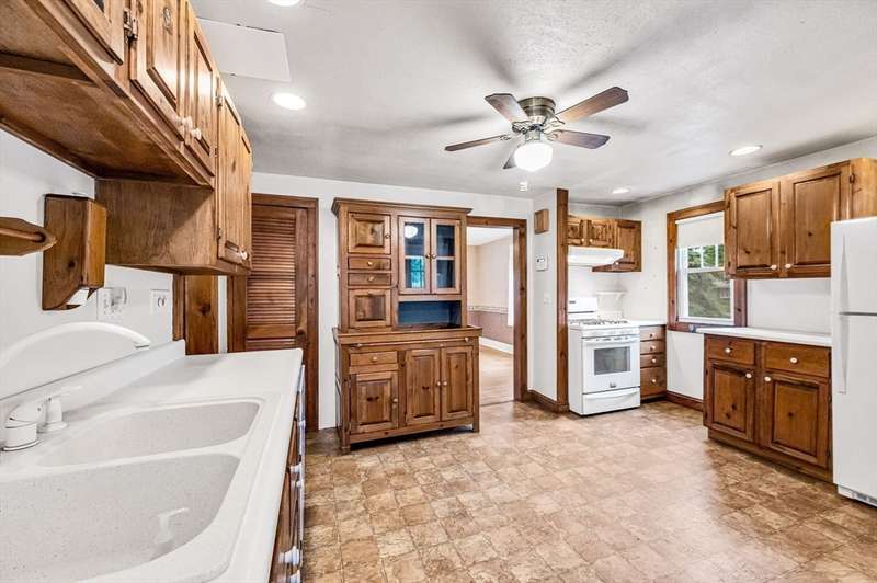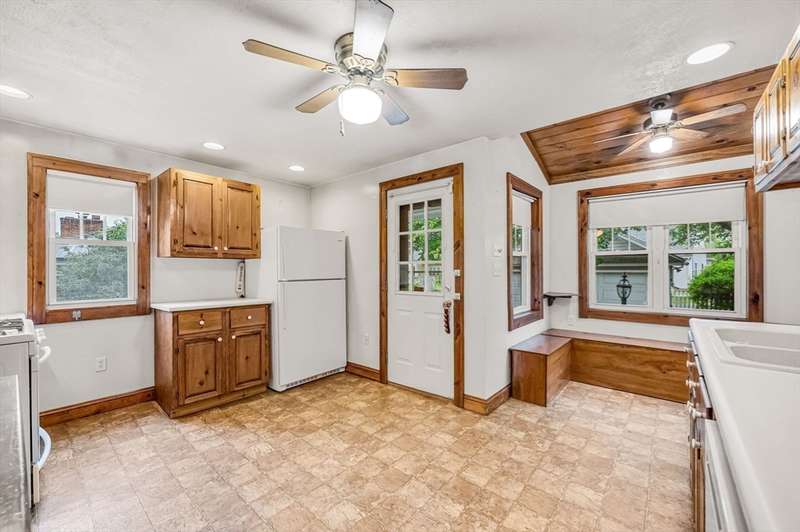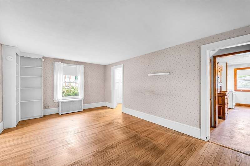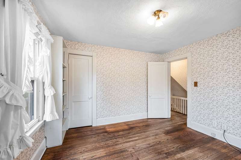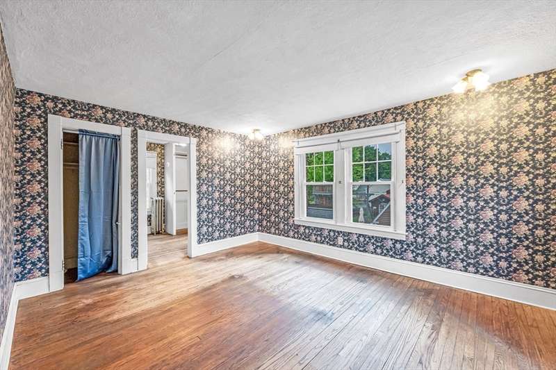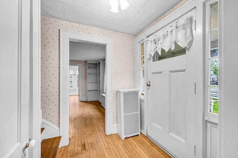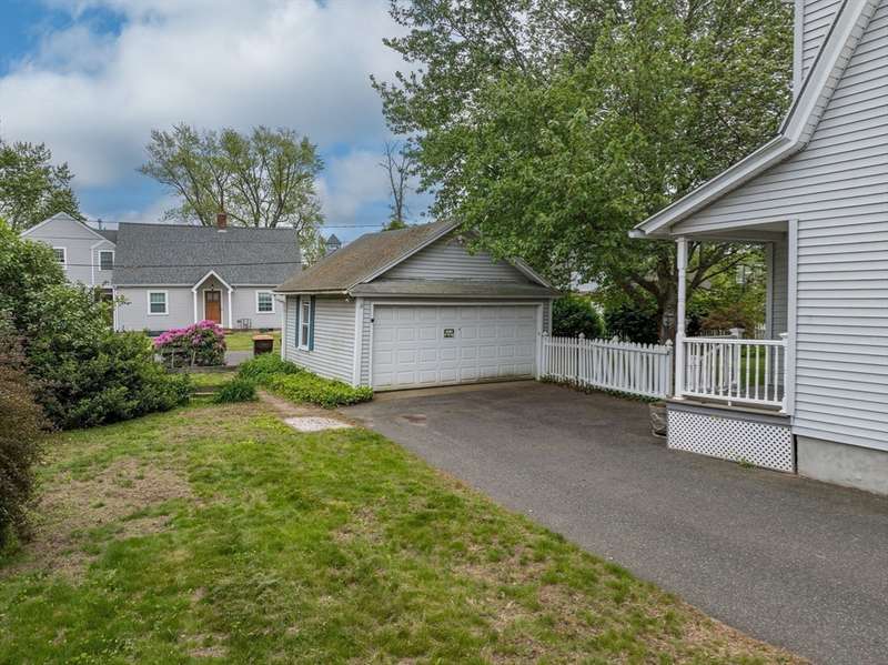 Comfortable 8 room, 3-4 bedroom 1.5 bath, 1,810 SF Colonial offers lots of living space & oak hardwood flooring in most rooms. ALL HARDWOOD FLOORING JUST REFINISHED! Living room has wood burning lined fireplace & custom built-ins, sunroom, formal dining w/shelved dinnerware closet, country kitchen with breakfast nook, guest bath & screened porch complete the 1st level. Upstairs are 3+ bedrooms & full tub/shower bath. Main bedroom has a tandem dressing room/nursery. w/ direct access to bathroom. Walk-up attic provides a storage side & one heated room; can be a 4th guest bedroom or play room, if desired. Full basement offers laundry area with washer & dryer, recent boiler & hot water storage tank. 5 window unit ACs remain for buyer's use. Workbench stays, extra cold storage under sunroom & a rear bulkhead for exterior access. Gutters have leaf guards. 2 car detached garage & fully fenced yard has pretty flowering shrubs & perennials! Lot has frontage on Pomeroy St, for extra parking