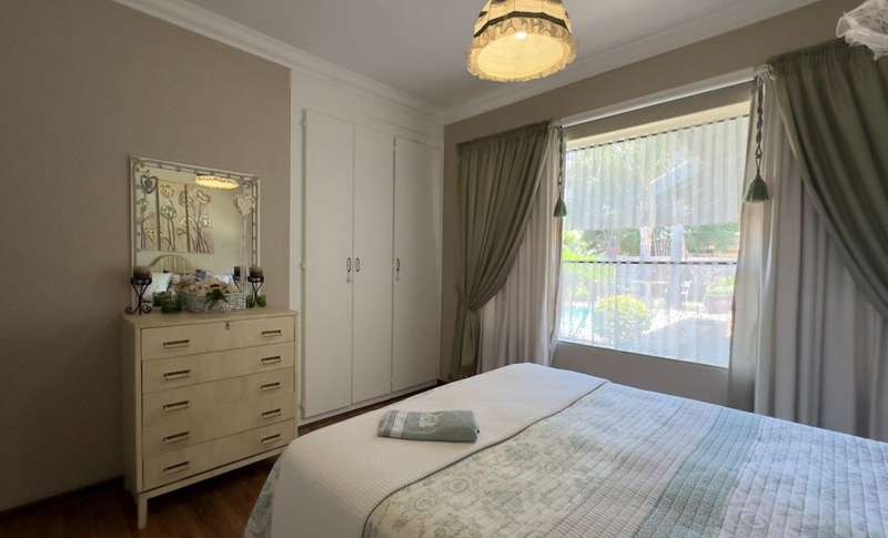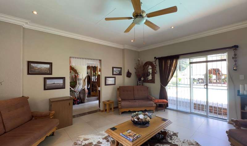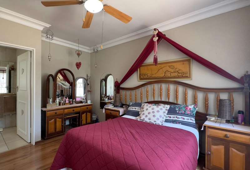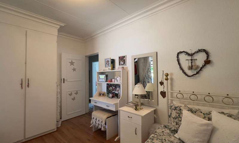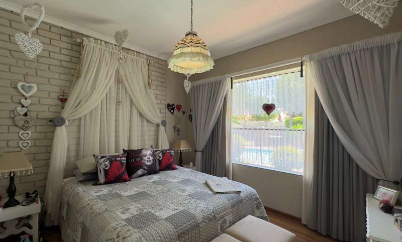Sizable family home, situated on 1015m² corner stand in Doringkruin. The home offers the following to the family • Entertainment room with indoor braai (leading out alongside swimming pool) • Open plan living space (lounge and dining area) • Study • Sizable kitchen ( breakfast counter, white wooden cabinets with granite working tops, Eye level oven and hob with extractor) • Laundry • 4 Bedrooms (each with built in cupboards and an ensuite in the main bedroom) • 2 Bathrooms Paved driveway leads you around back of the home, to double carport (safe and secure parking) A lapa overlooks the swimming pool and outdoor braai area. A neat and well-established garden wraps around the home, enclosed on all sides.