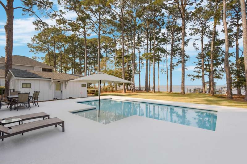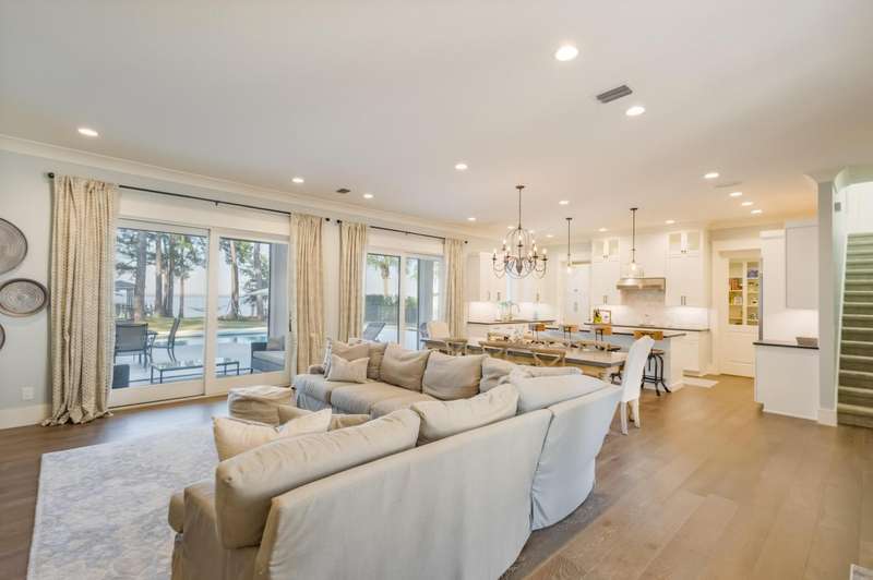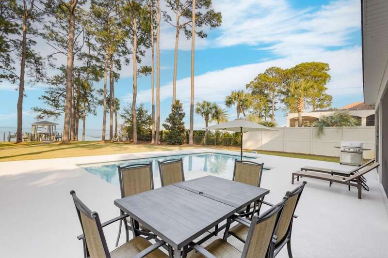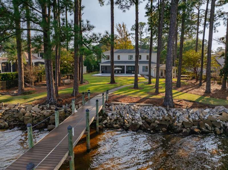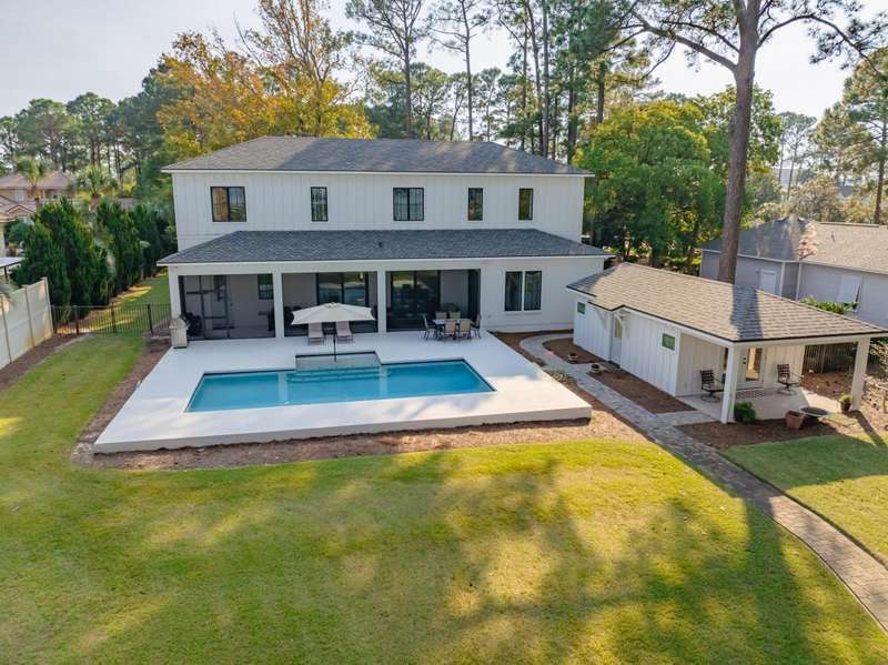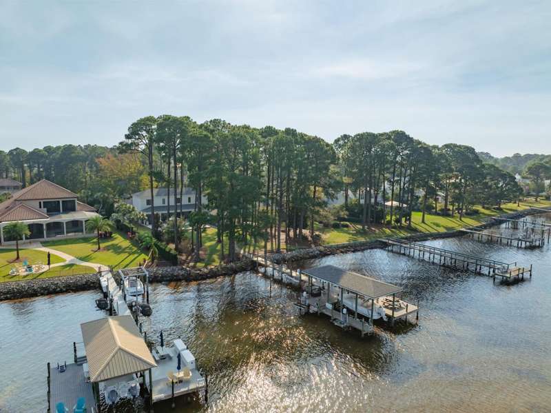 Welcome to this extraordinary builder's personal residence perfectly positioned on a natural setting with sweeping unobstructed and panoramic views of the beautiful Bay. This one-of-a-kind property offers luxury, comfort and the ultimate coastal lifestyle complete with a spacious 6 bedroom main house and separate detached guest house ideal for hosting family and friends. Step outside to your own private paradise where a saltwater pool invites you to unwind while soaking in the tranquil surroundings. Boating enthusiasts will appreciate the private dock, boathouse with lift and three jet ski lifts making it effortless to explore the Bay's pristine waters. The 3-car oversized garage offers ample space for vehicle storage and recreational gear. Designed with elegance and functionality in mind the first floor boasts open concept living, dining and kitchen areas with hardwood floors, 10-foot ceilings, cove crown molding and spectacular water views. Chef's kitchen features Sub-Zero & Wolf stainless appliances, custom cabinetry, large walk-in pantry, granite counters, glass backsplashes and ship lap accents. Included in main area is master suite retreat with classic finishes and serene water views, guest bedroom with bath, office, and roomy bonus/flex room ideal for multi use. Second floor incorporates den/sitting area, 4 bedrooms and 2 baths. Cozy detached guest house includes mini kitchen, full bath and peaceful water views. No HOA. Conveniently located on Bayshore Drive near lighted intersection and close proximity to beach accesses, shopping, dining and all the Emerald Coast has to offer!